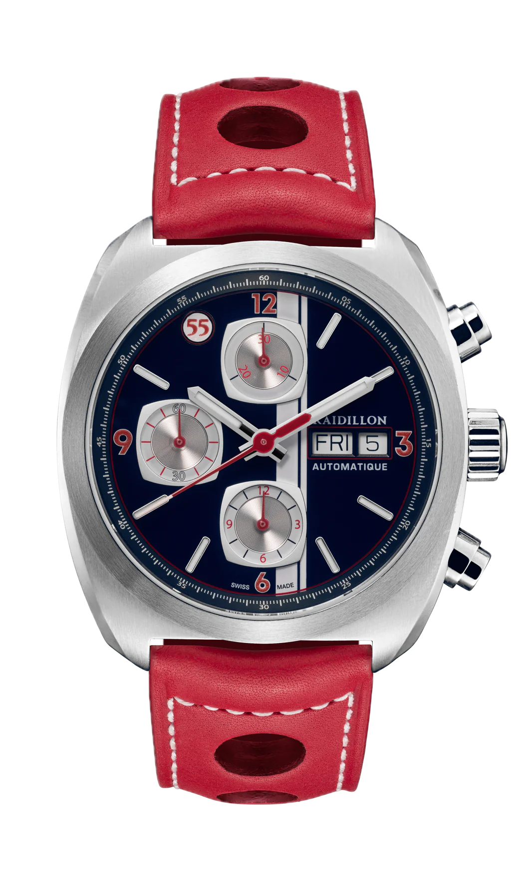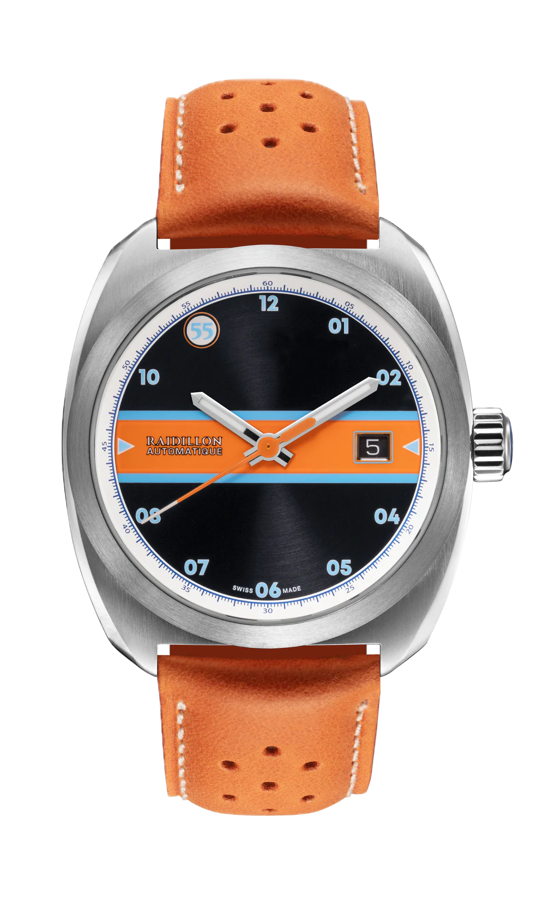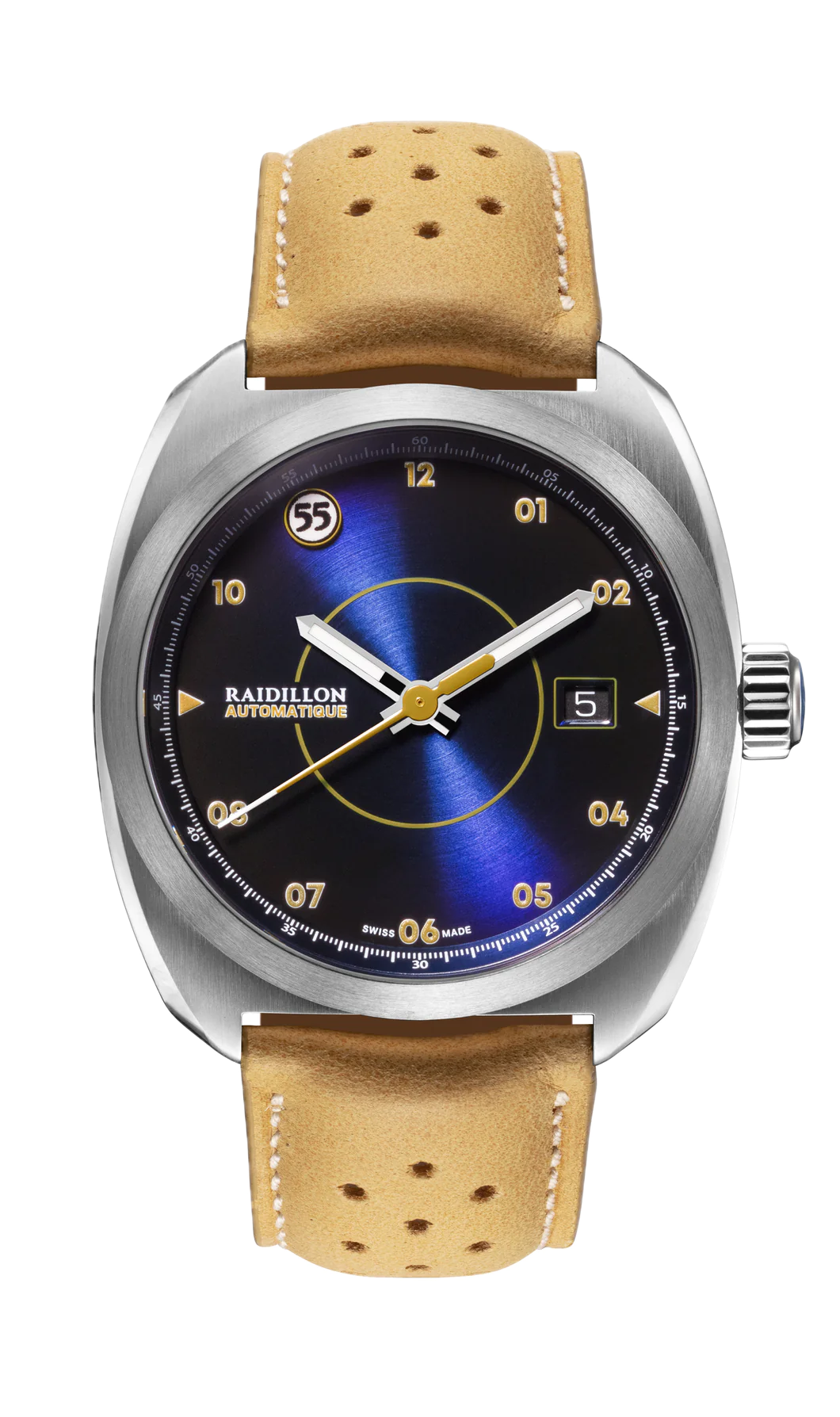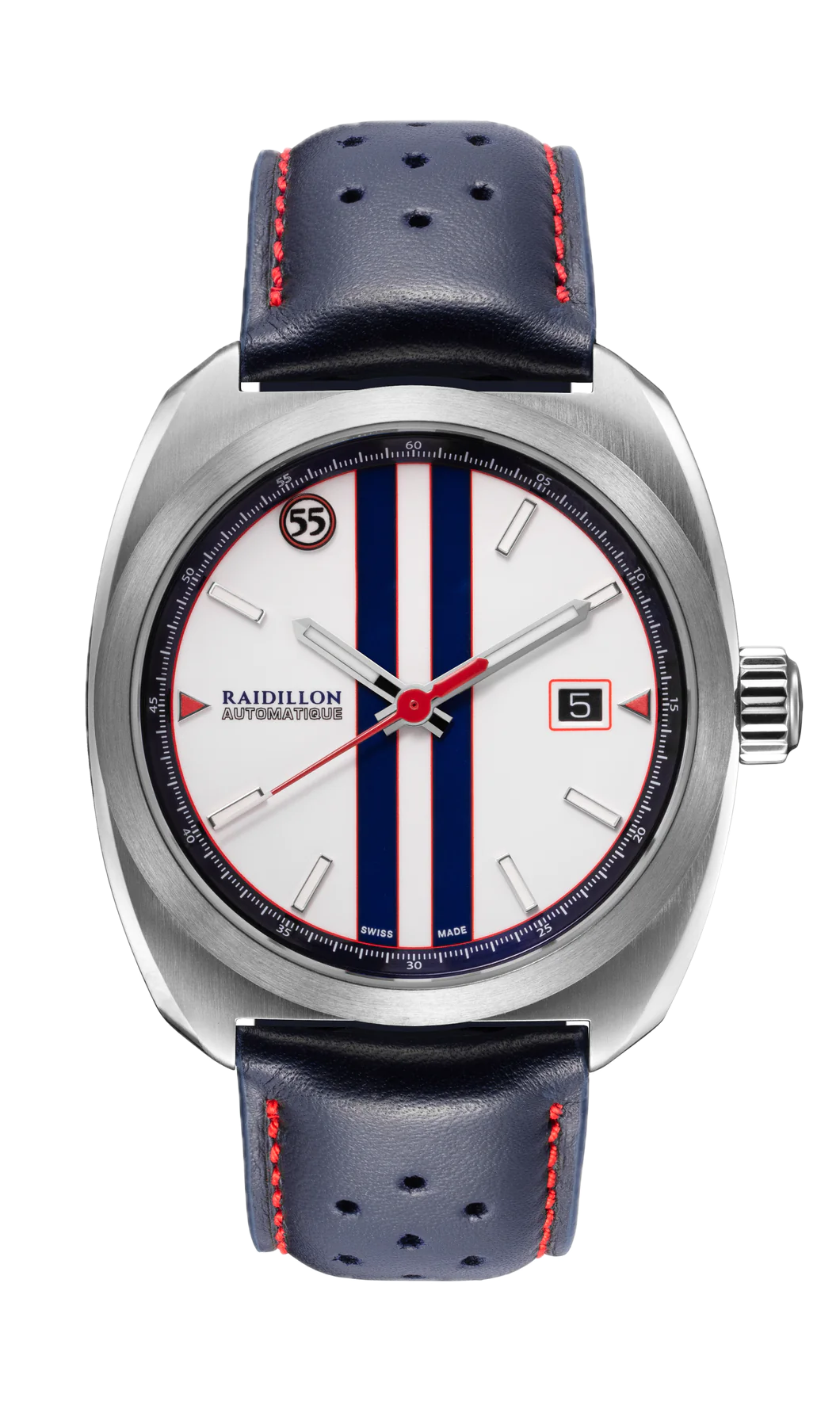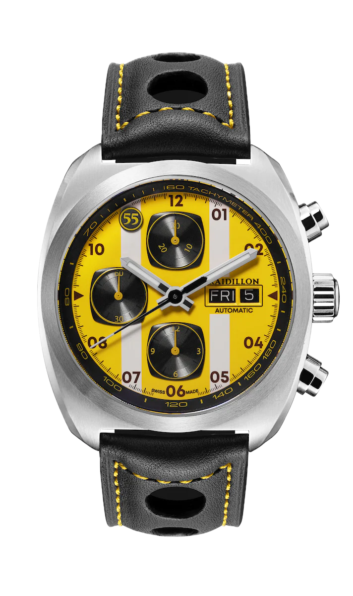 The Miles de Raidillon collection embodies the spirit of understated and refined elegance. Designed for lovers of timeless timepieces, this range pays homage to automotive passion and Swiss precision. Each model is produced in a limited edition of 55 numbered pieces, guaranteeing exclusivity and authenticity.