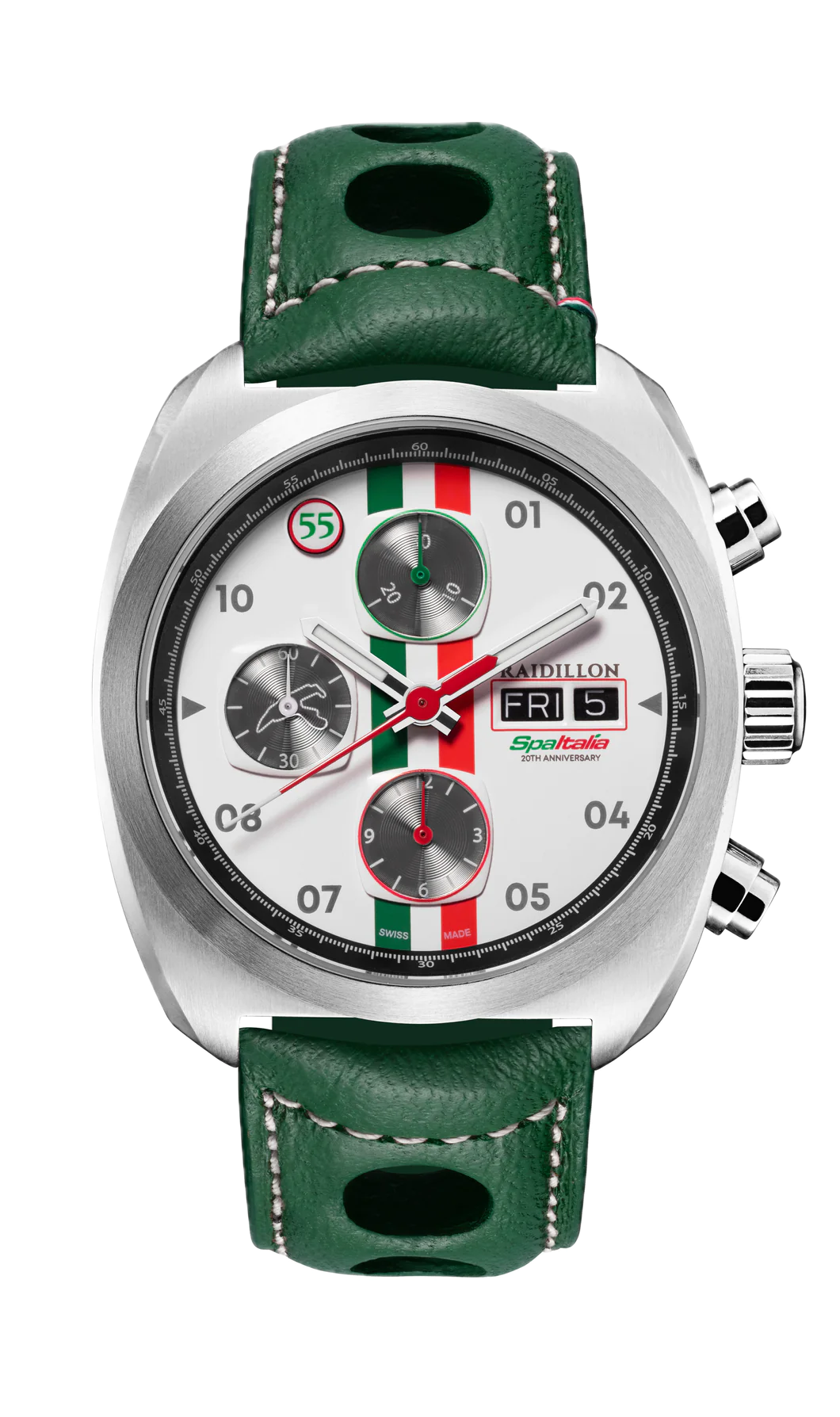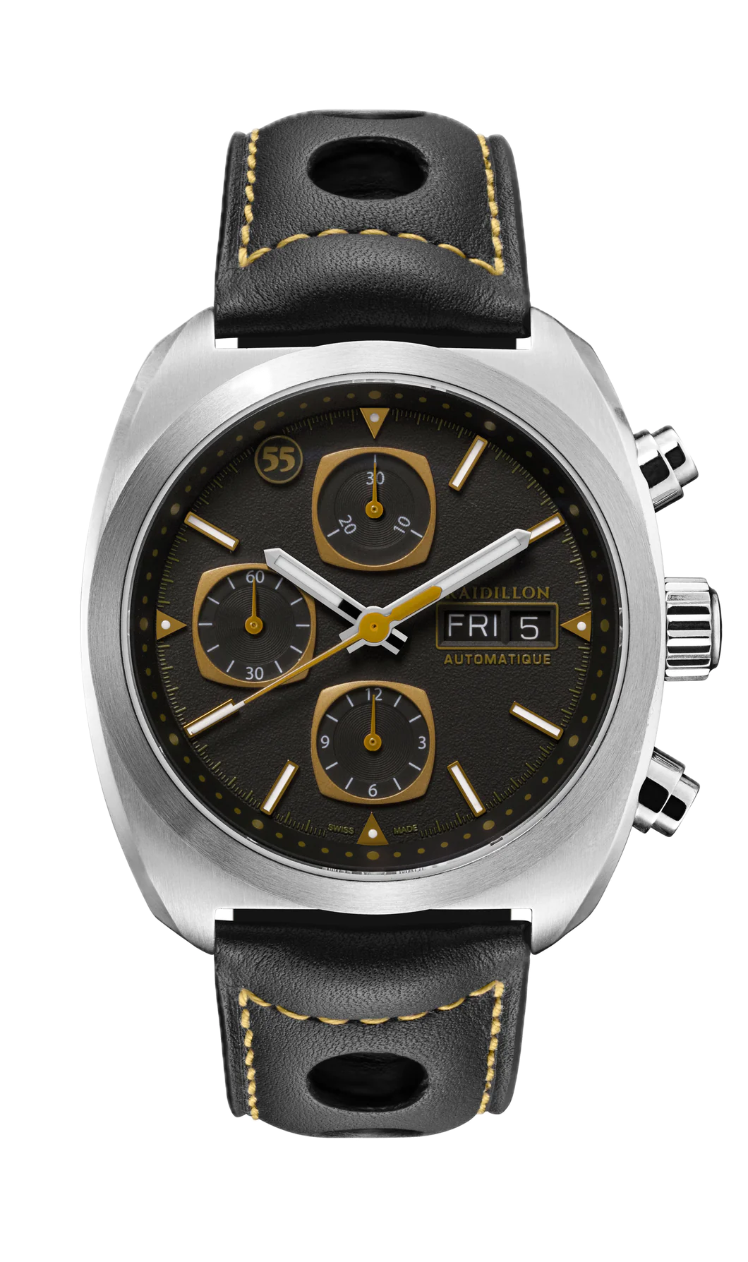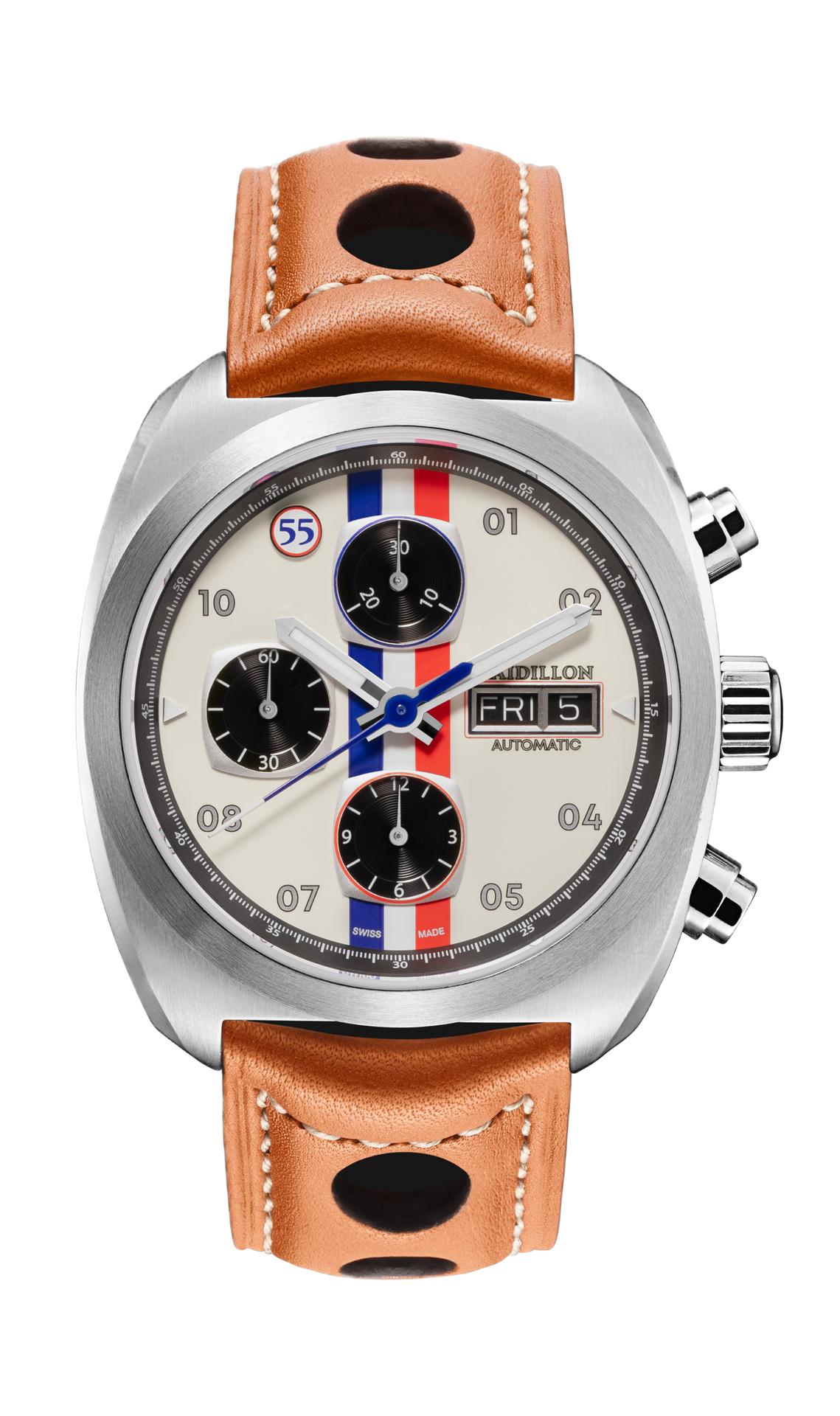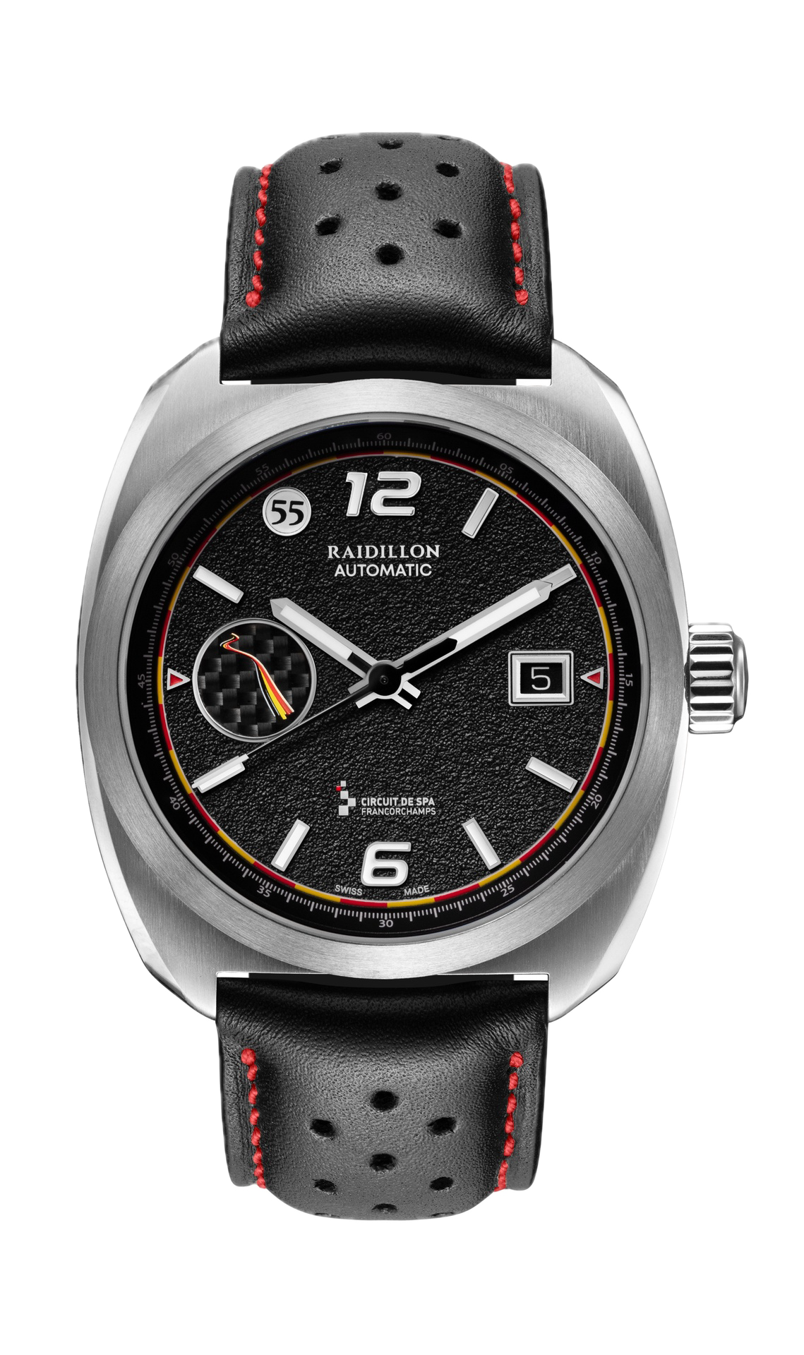 The Miles de Raidillon collection embodies the spirit of understated and refined elegance. Designed for lovers of timeless timepieces, this range pays homage to automotive passion and Swiss precision. Each model is produced in a limited edition of 55 numbered pieces, guaranteeing exclusivity and authenticity.