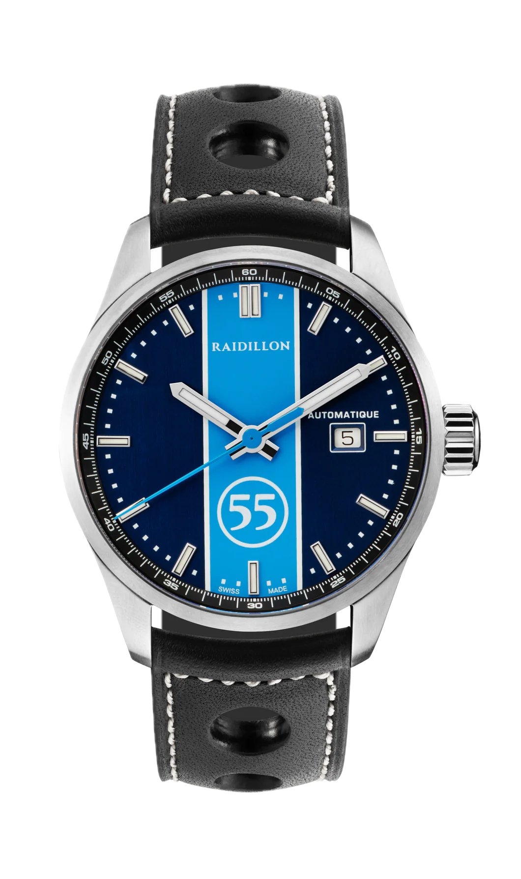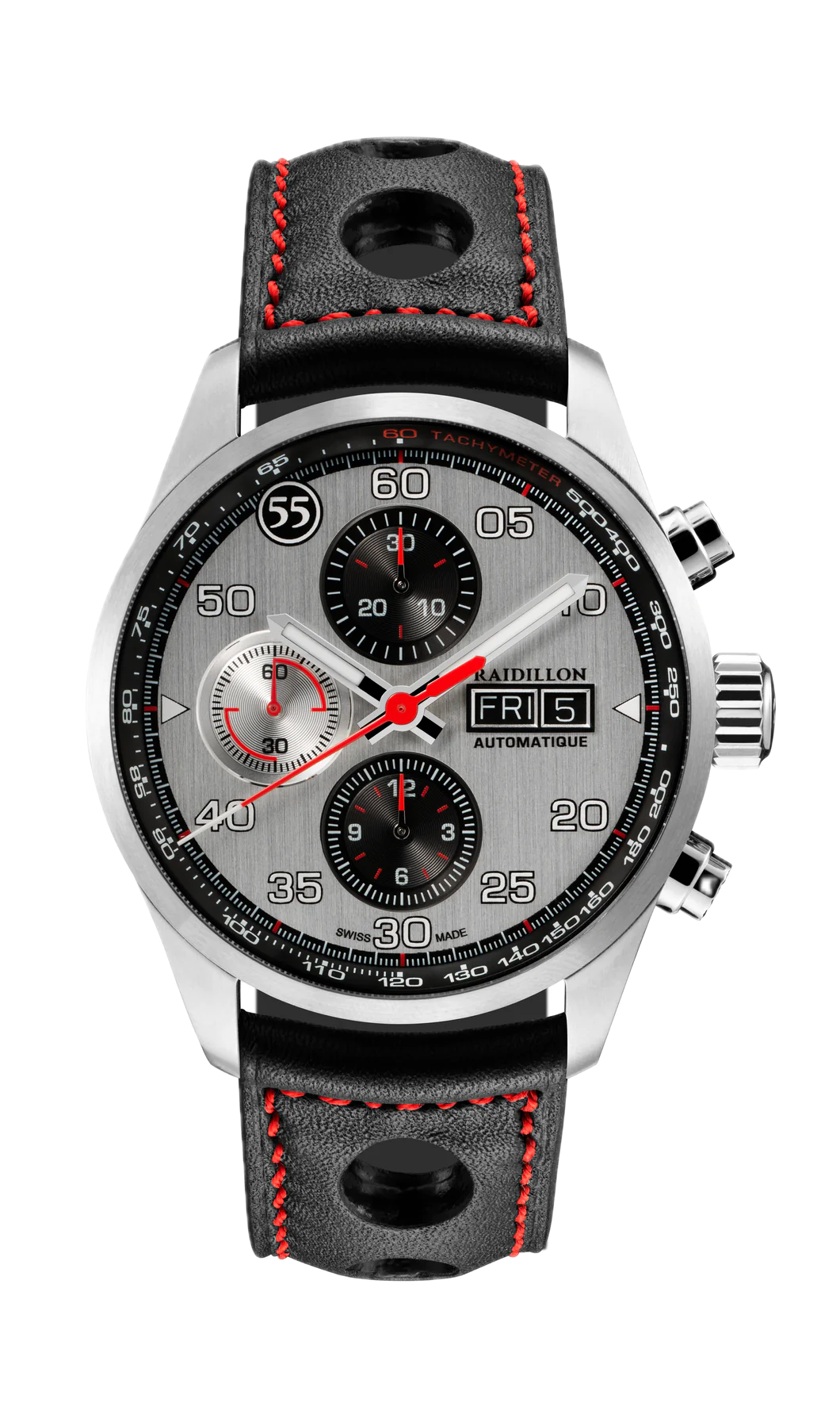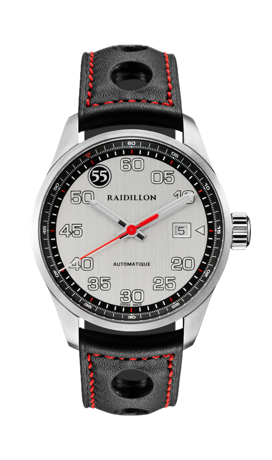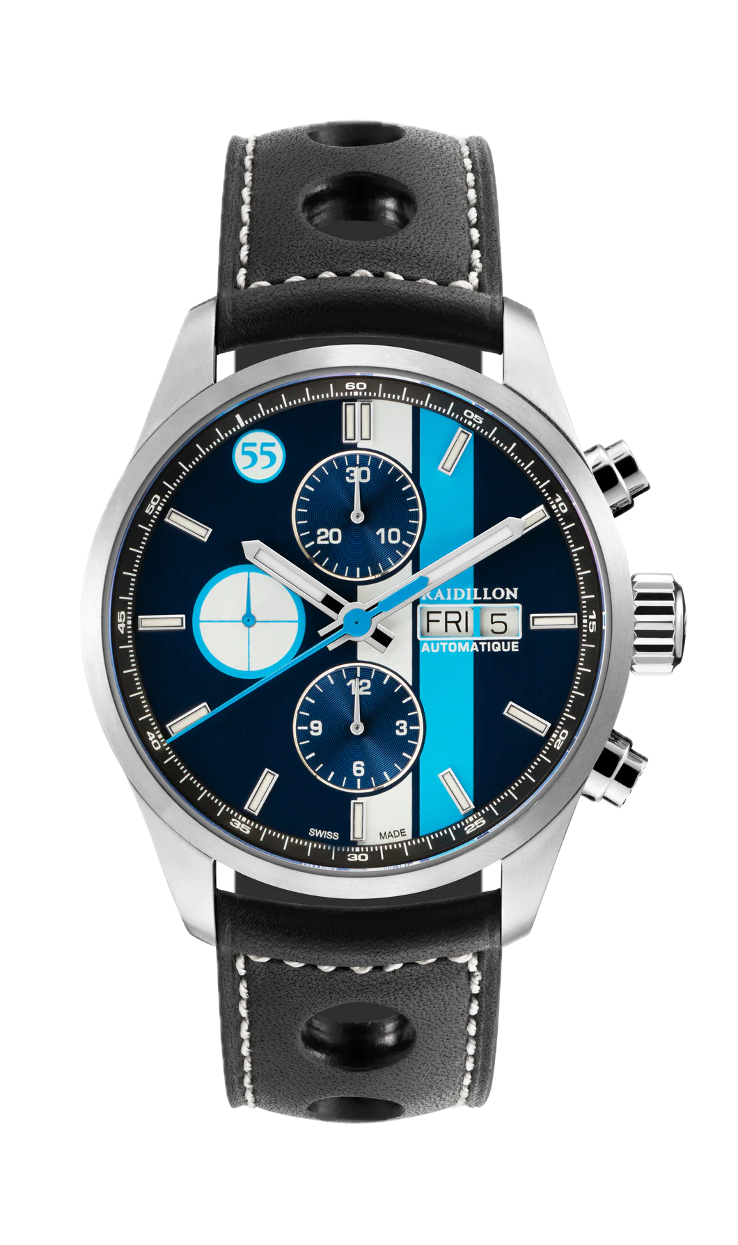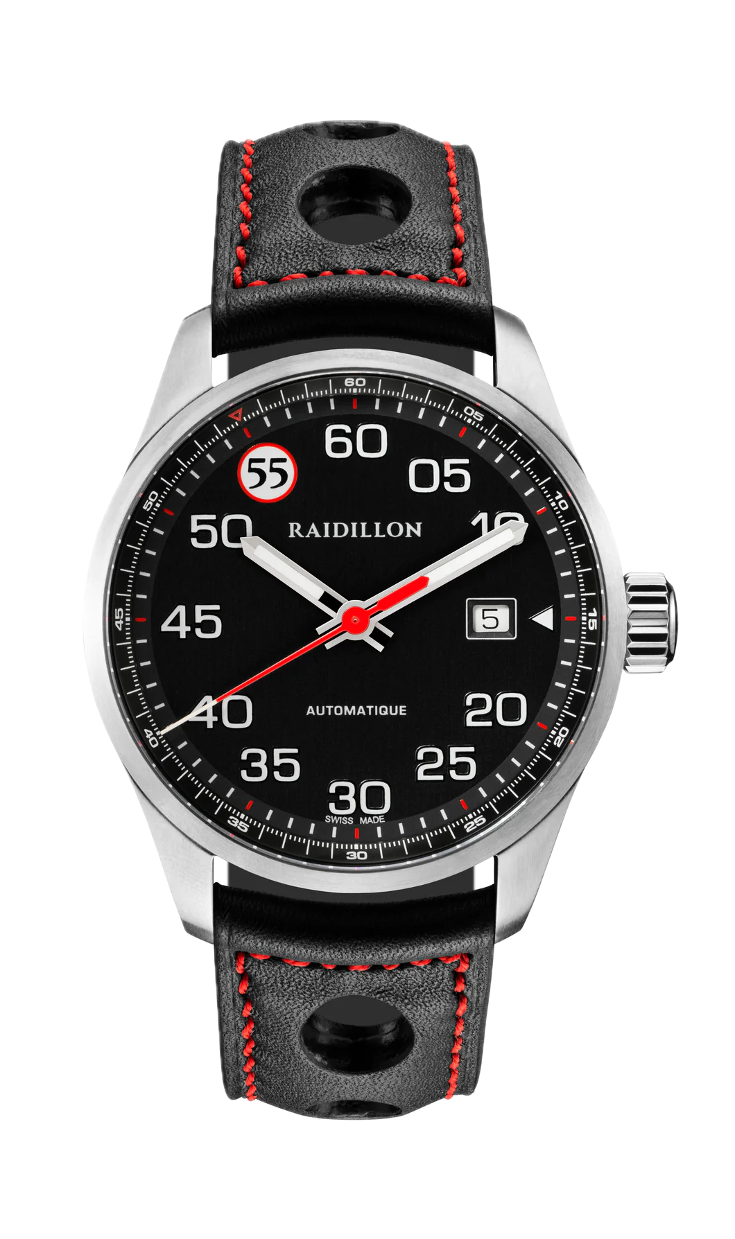 Raidillon 's Speed collection celebrates the passion for motorsport with automatic watches and chronographs featuring a sporty design. Each model is produced in a limited edition of 55 numbered pieces, paying homage to the 55 cars authorized to race on the Spa-Francorchamps circuit.