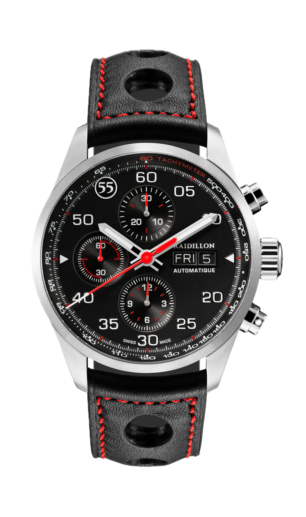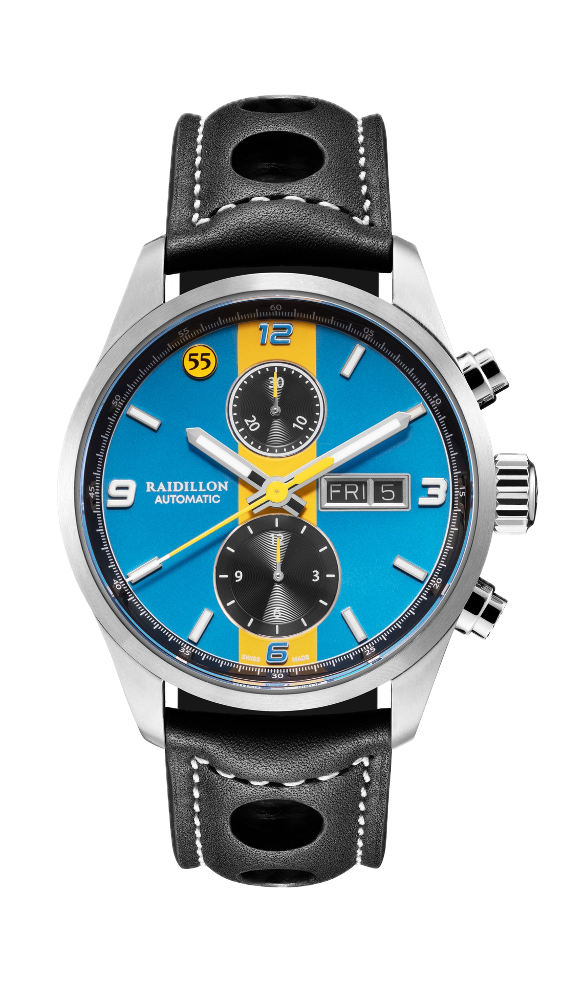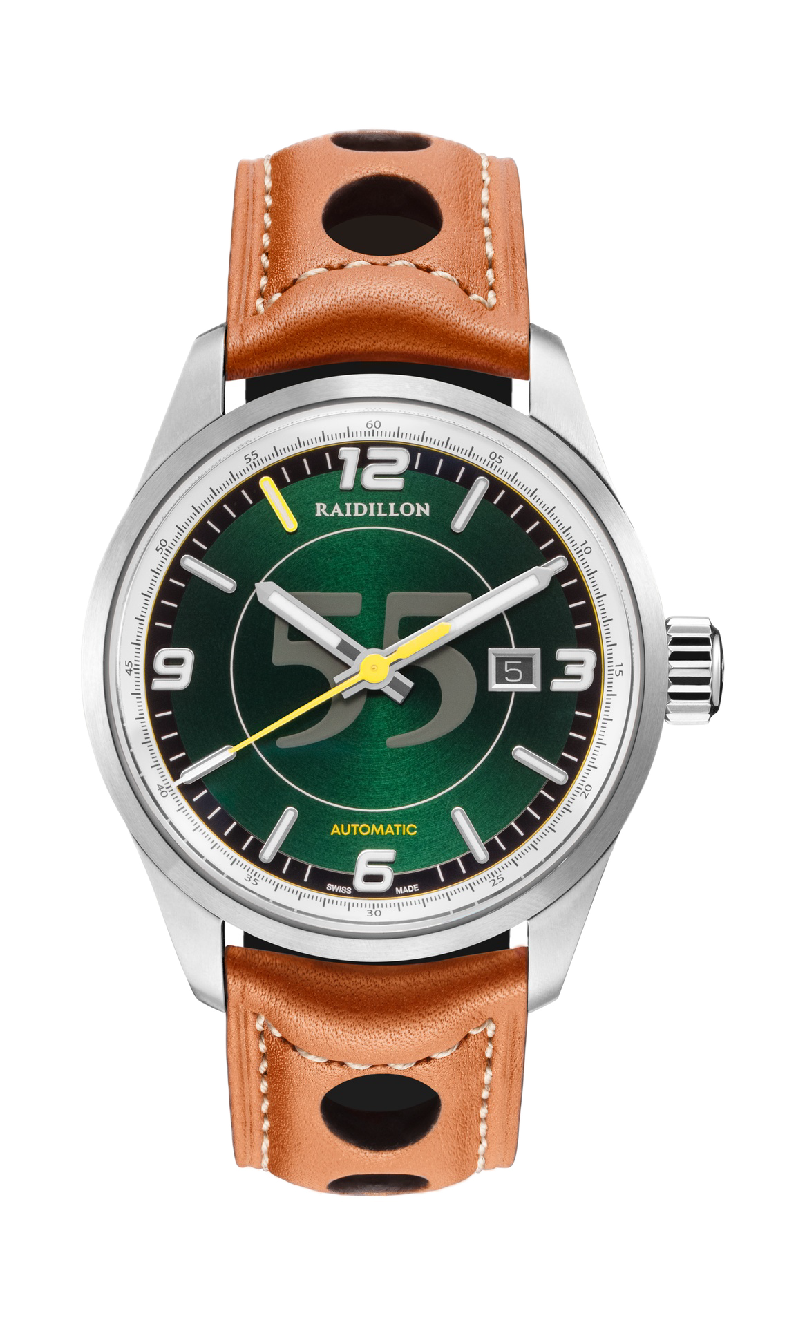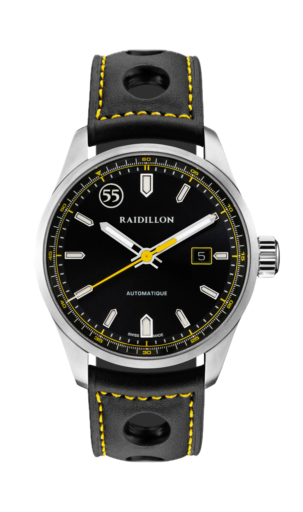 Raidillon 's Speed collection celebrates the passion for motorsport with automatic watches and chronographs featuring a sporty design. Each model is produced in a limited edition of 55 numbered pieces, paying homage to the 55 cars authorized to race on the Spa-Francorchamps circuit.