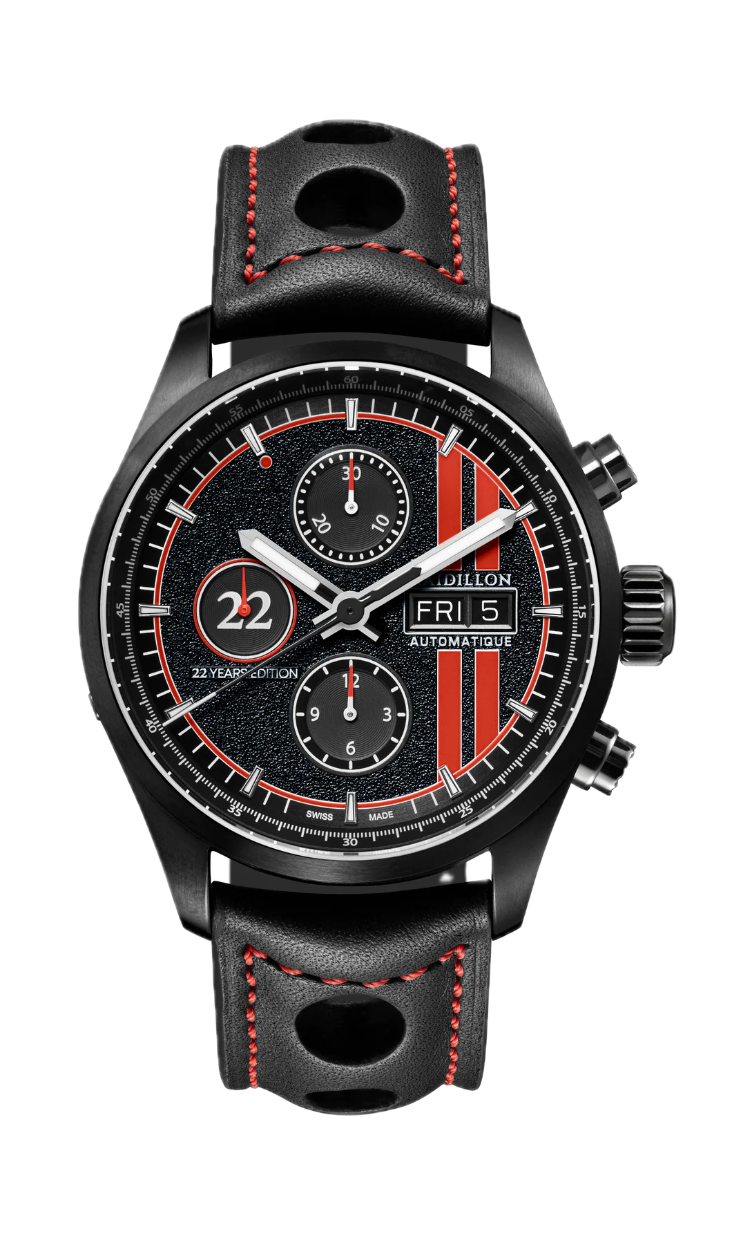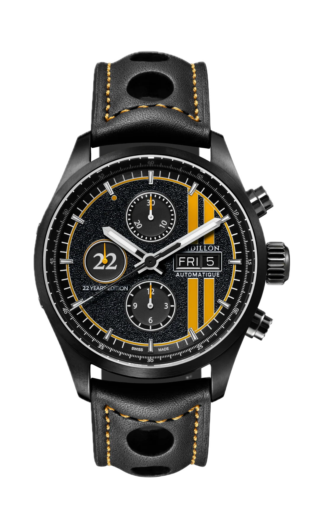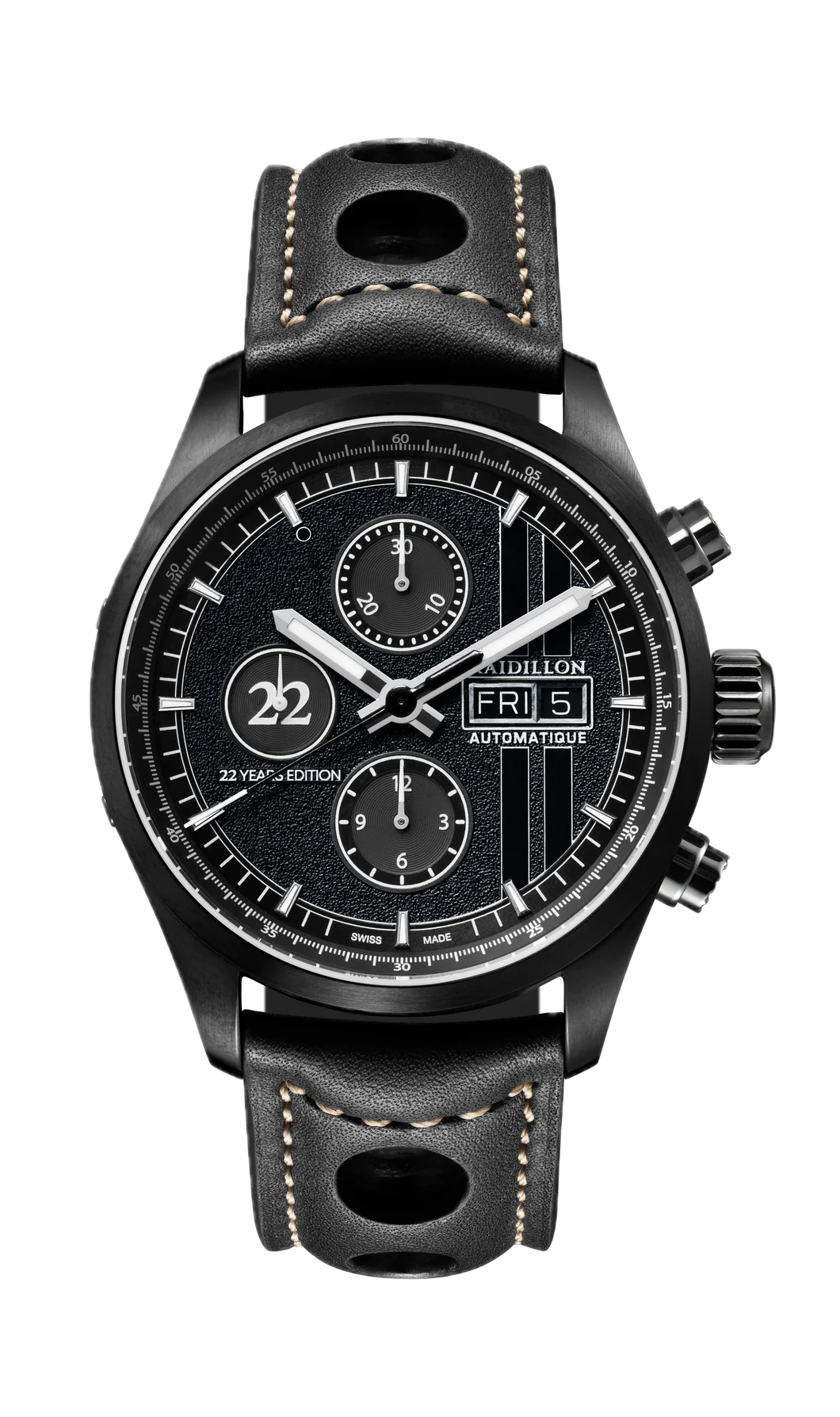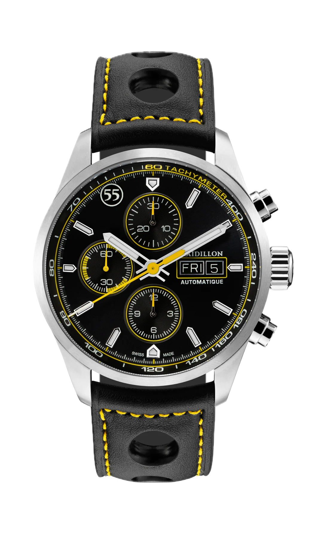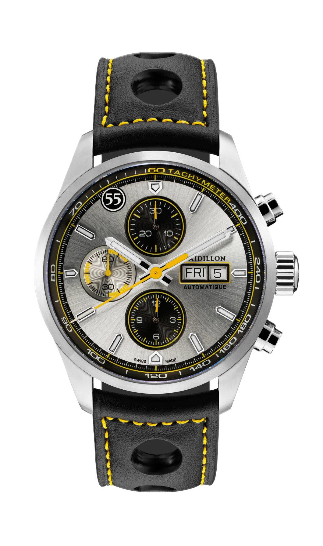 Raidillon 's Speed collection celebrates the passion for motorsport with automatic watches and chronographs featuring a sporty design. Each model is produced in a limited edition of 55 numbered pieces, paying homage to the 55 cars authorized to race on the Spa-Francorchamps circuit.