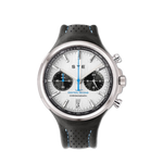 With its sculpted 316L steel case, its French full-grain leather strap and its automatic chronograph movement with a beating heart, it combines mechanical precision and a racy look.
