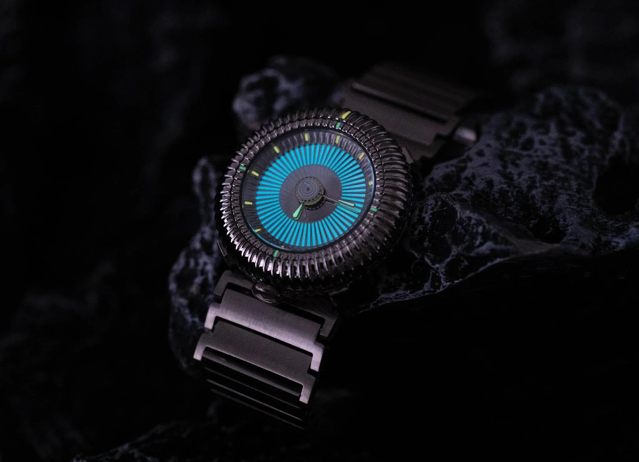 So it's a really strange watch. Lots of radial lines. The dial, the case, the bezel, the crown.