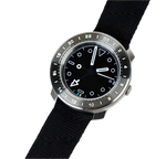A high-precision GMT watch, combining modern utility with sleek design. Every element has been intentionally designed—from the case geometry to the dial details—by combining traditional watchmaking codes with a contemporary industrial aesthetic.