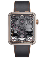 Son cadran dévoile un spectacle mécanique inédit : un affichage des heures par micro-chaîne “Snake” (un point lumineux poursuivi par six autres sur un cycle de 12 h), complété par des cylindres rotatifs pour les minutes, la réserve de marche et l’indication jour/nuit. L’architecture interne repose sur une micro-chaîne soutenue par des rubis, un système de compensation thermique, et plus de 870 composants assemblés à la main.