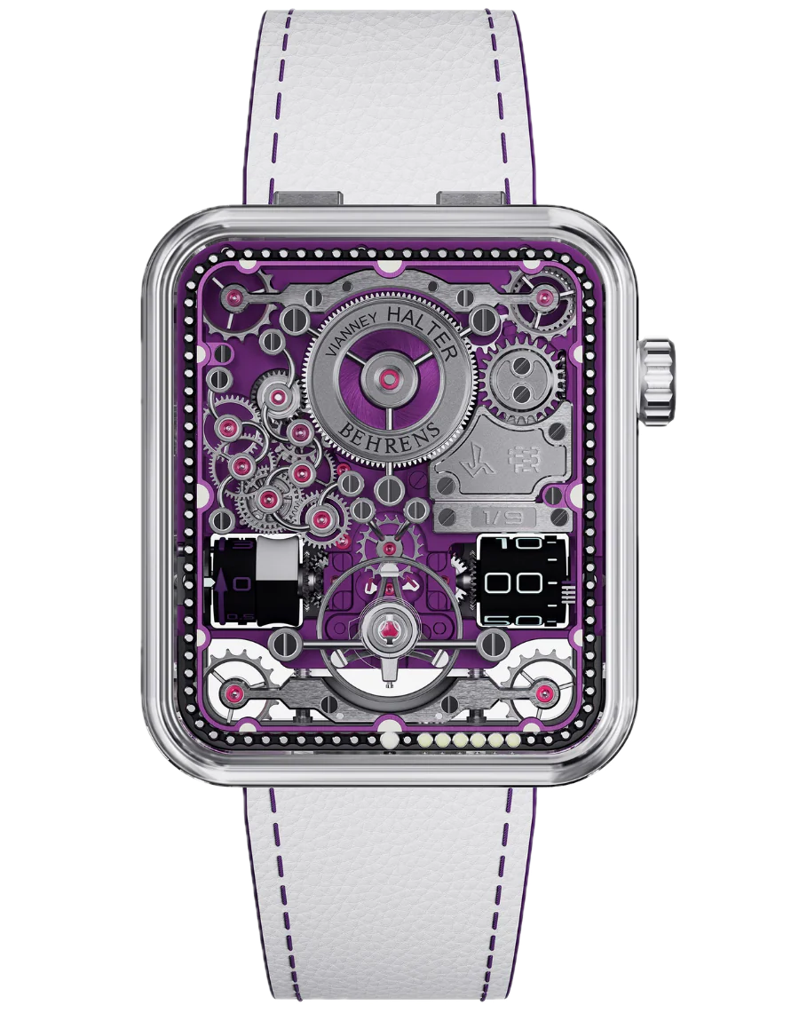 Limitée à 18 pièces seulement – 9 en or blanc 18K avec accents violets et 9 en or rose 18K avec accents gris/orange – cette création est un véritable objet de collection.