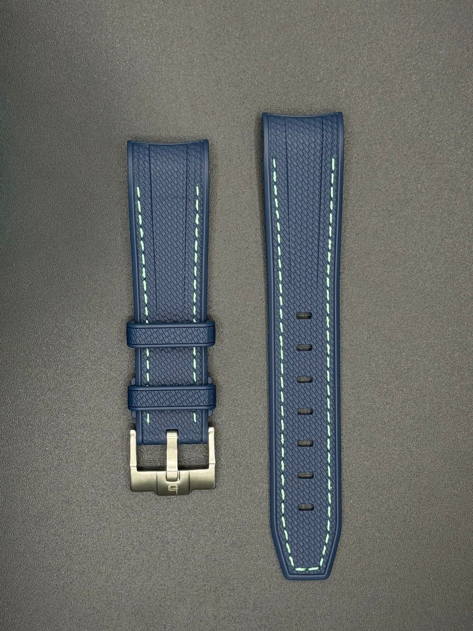 Navy blue rubber strap with white stitching for MoonSwatch and Omega watches