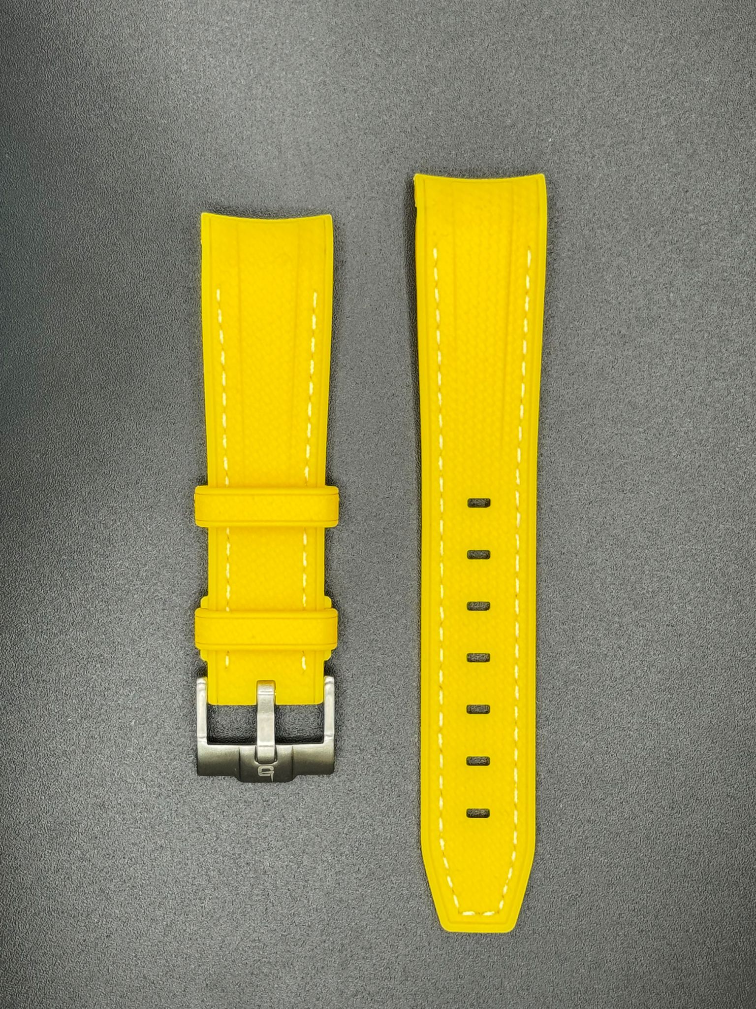 Yellow rubber strap with white stitching for MoonSwatch and Omega watches