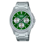 Casio is a Japanese brand with extraordinary expertise. Driven by an inventive spirit, it continues to push the boundaries of innovation by developing timepieces adapted to the most extreme conditions. Its models combine resistance and reliability in a beautiful aesthetic that does not go unnoticed. Casio invites you to discover this watch "Panda Dial" MTP-1375PD-3AVEF which will elegantly adorn the wrists of men. Her round case poster 48.50 mm of length, 42 mm of diameter And 9.70 mm thick with a weight of 124 gr . Silver, it is made in brushed stainless steel And polite, which will give you a beautiful look. It is equipped with a fluted gray bezel which surrounds a mineral glass . At three o'clock, he reveals a protected crown and the appearance notched, which promotes a good grip. This is complemented by two push buttons which together manipulate the central elements. This case has a box bottom ensuring a seal of 5 ATM.