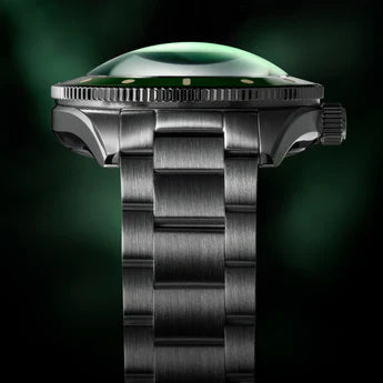 Inspired by the depths of the Challenger Deep, the Challenger Automatic is a masterfully crafted dive watch. Its 3D-molded dial gives it a striking dimension, evoking the rugged textures of the seabed, while the deeply engraved caseback reinforces its maritime heritage. Its 42 mm stainless steel case offers a profile that is both refined and robust, ideal for exploration and everyday wear.