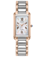 The Citizen L Bianca is a women's watch that combines elegance, refinement, and sustainable technology. With its 22mm curved rectangular case, mother-of-pearl dial, blue-tinted hands, and Art Deco-inspired design, it commands attention while remaining understated and elegant. Powered by Eco-Drive technology, it recharges with light, never needing a battery. Water-resistant to 50 meters, it's the perfect timepiece for chic and functional everyday wear.