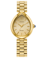 The Citizen L Rainell is a women's watch that blends elegance and innovation. Its 26 x 31.3 mm teardrop case gives it a unique and refined silhouette. Powered by Citizen's Eco-Drive movement (light-powered, no battery required), it offers 50m water resistance, making it suitable for everyday wear. The integrated bracelet, delicate silver dial, and organic design appeal to those seeking a watch that is both sophisticated and original.