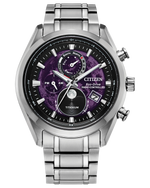 The Citizen Tsuki-yomi A-T is a flagship watch that combines cutting-edge technology with refined design. It is the first watch to combine moon phase and atomic radio synchronization—for extreme precision. It is crafted with a Super Titanium™ case, making it both lightweight and durable. The dial evokes the surface of the moon, and a window at 6 o'clock displays the moon phase in real time.