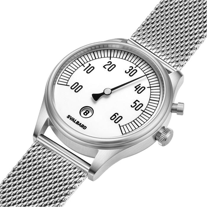 The Svalbard Time Travel HX15 is a modern complication watch that combines a jump hour display and retrograde minutes. The time is displayed by a disc that instantly jumps, while the minute hand travels a retrograde arc before returning to zero each hour. An innovative and original timepiece, designed for lovers of extraordinary watches.