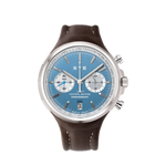 With its sculpted 316L steel case, its French full-grain leather strap and its automatic chronograph movement with a beating heart, it combines mechanical precision and a racy look.