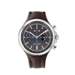 With its sculpted 316L steel case, its French full-grain leather strap and its automatic chronograph movement with a beating heart, it combines mechanical precision and a racy look.