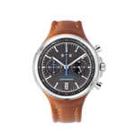 With its sculpted 316L steel case, its French full-grain leather strap and its automatic chronograph movement with a beating heart, it combines mechanical precision and a racy look.