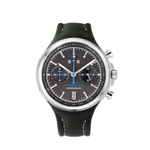 With its sculpted 316L steel case, its French full-grain leather strap and its automatic chronograph movement with a beating heart, it combines mechanical precision and a racy look.