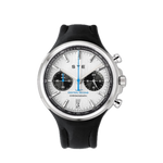 With its sculpted 316L steel case, its French full-grain leather strap and its automatic chronograph movement with a beating heart, it combines mechanical precision and a racy look.