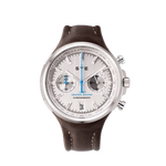 With its sculpted 316L steel case, its French full-grain leather strap and its automatic chronograph movement with a beating heart, it combines mechanical precision and a racy look.
