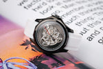 Immerse yourself in timeless elegance with the Eon Noir watch, a jewel of the Omnis Temporelle Collection. Designed to captivate lovers of avant-garde design, the Eon Noir represents the perfect blend of modern innovation and watchmaking heritage. Its bold, obscure dial, treated with a black PVD coating, reveals complex and captivating mechanics, beating to the rhythm of this functional masterpiece.