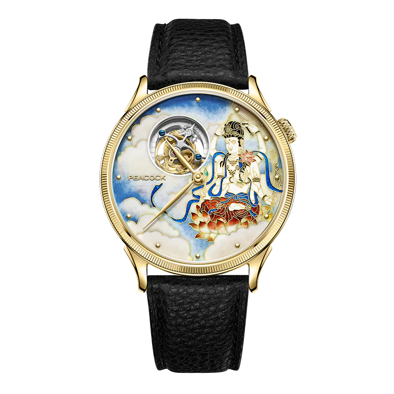 La Peacock Peak Maja-chenmo Tourbillon 18K Gold est une pièce d’exception qui illustre l’expertise horlogère de Peacock, l’une des plus anciennes manufactures chinoises, fondée en 1957.
