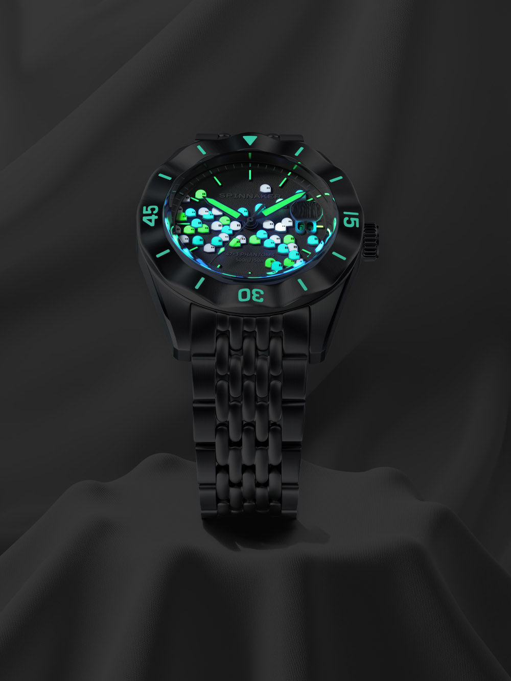 Dial: Spectral grey with a ghost pattern, adorned with luminous ghosts and luminescent hands and markers.