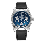 Forget classic hands: here, two miniature fencers challenge each other to a duel, their arms moving every minute to indicate the time with remarkable precision. A captivating mechanical ballet, which transforms reading time into a visual experience.