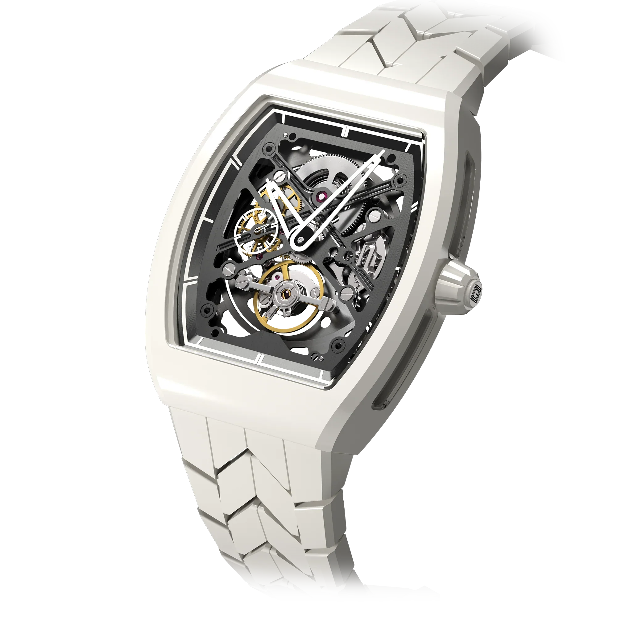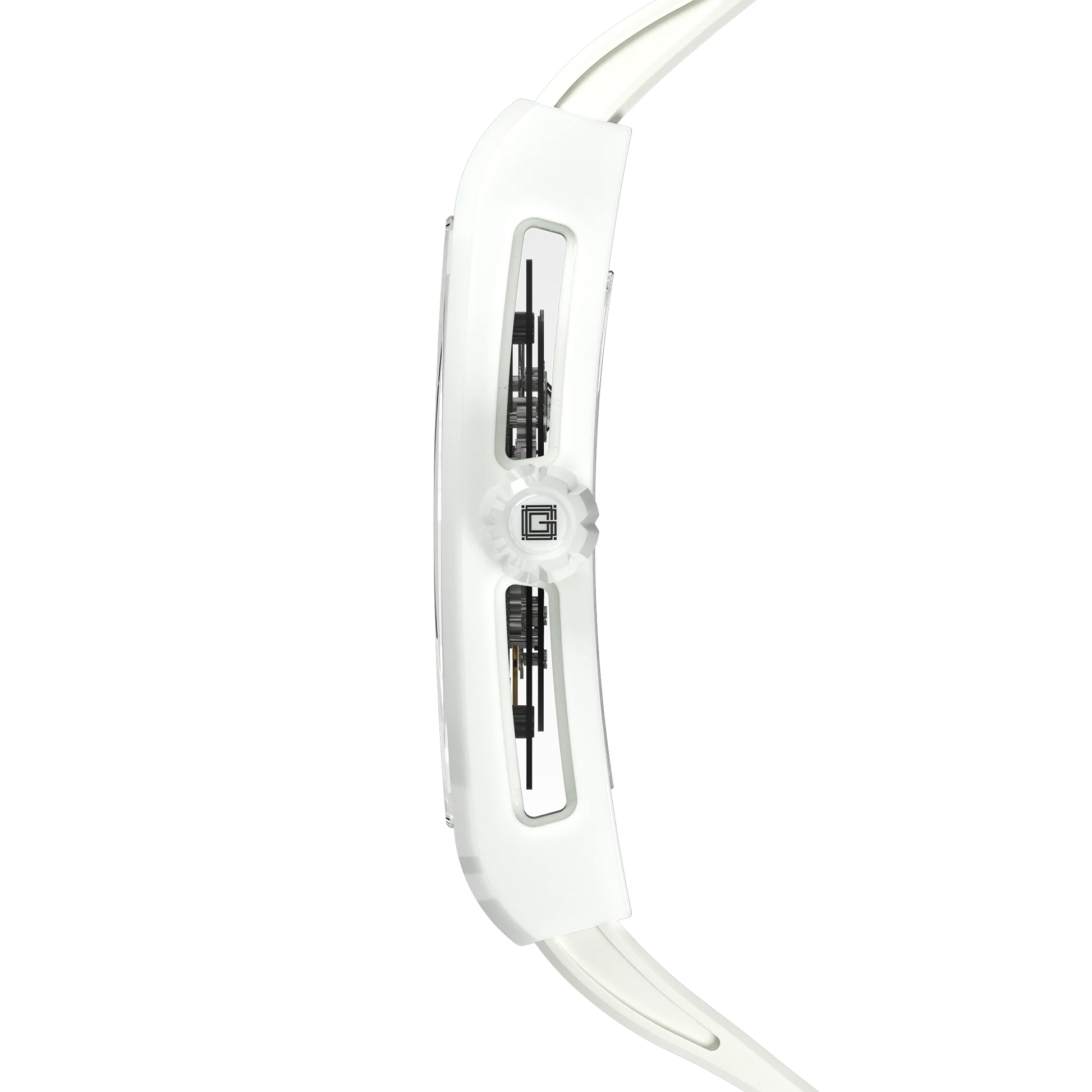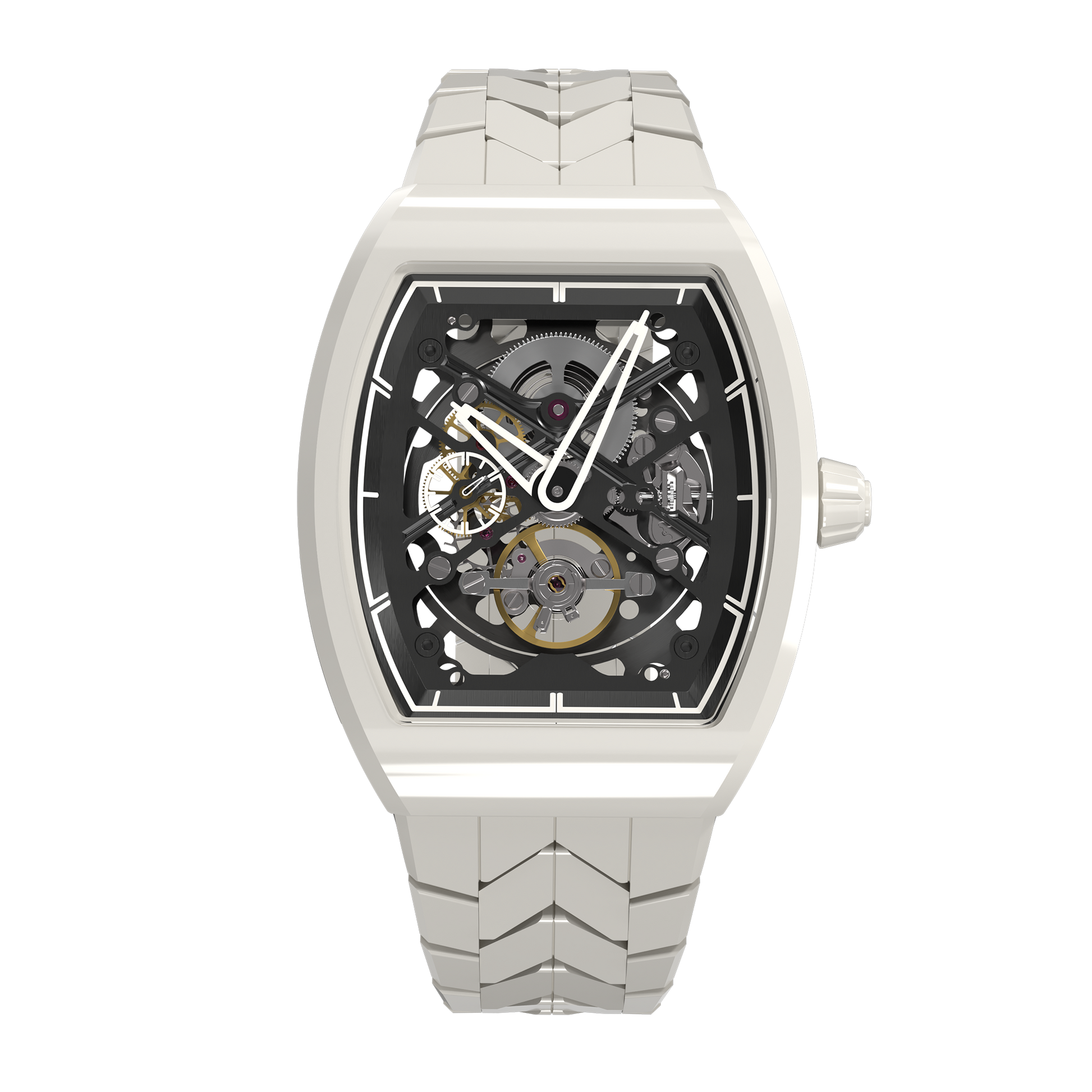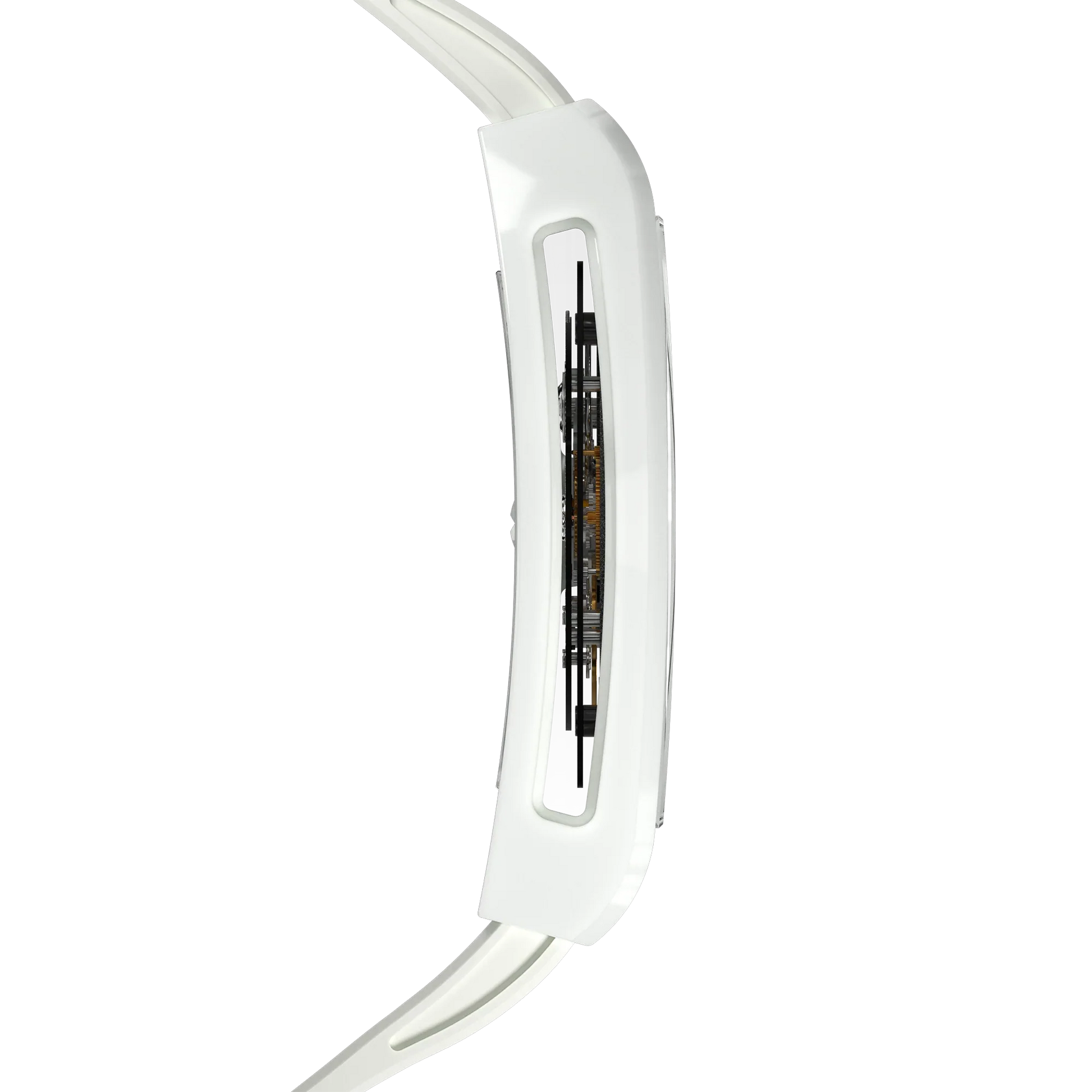 Notre céramique luminescente est d’un blanc éclatant le jour et se transforme en une lueur bleue envoûtante une fois la nuit tombée. Conçue à partir de composés céramiques infusés de Super-LumiNova de pointe, elle capte la lumière ambiante pour la restituer durant des heures dans une teinte douce et éthérée. Légère mais incroyablement résistante, elle défie les rayures et la décoloration tout en offrant une douceur tactile aussi raffinée que son apparence.