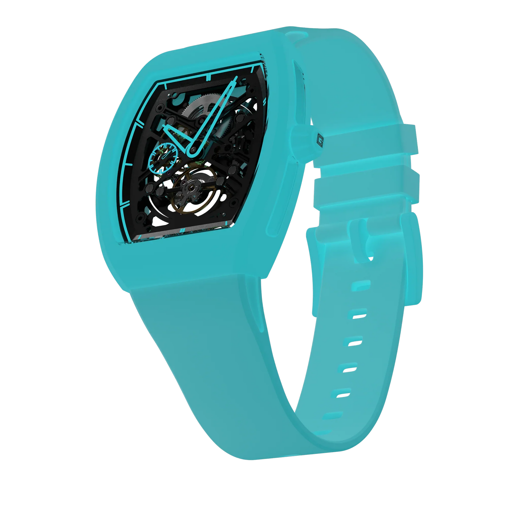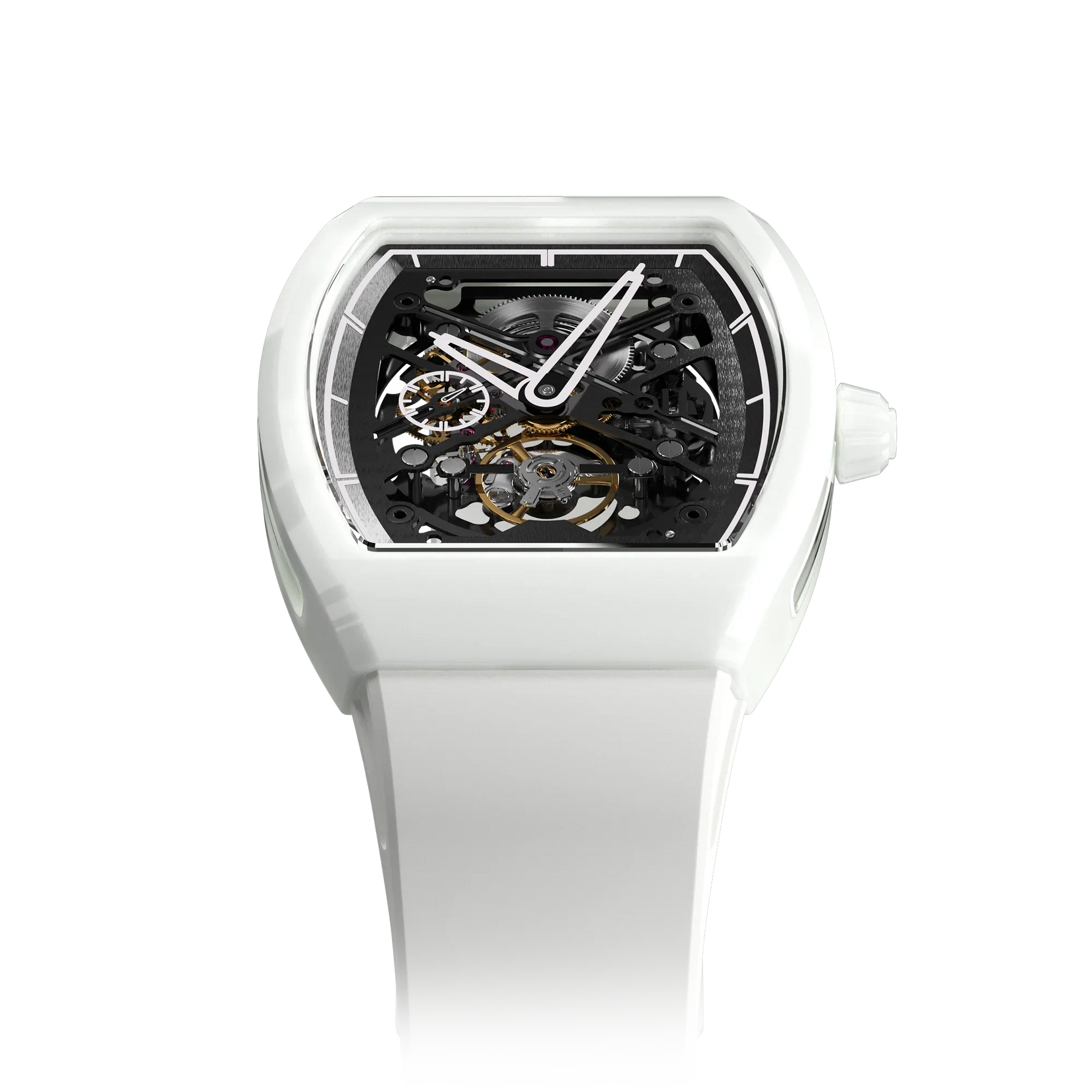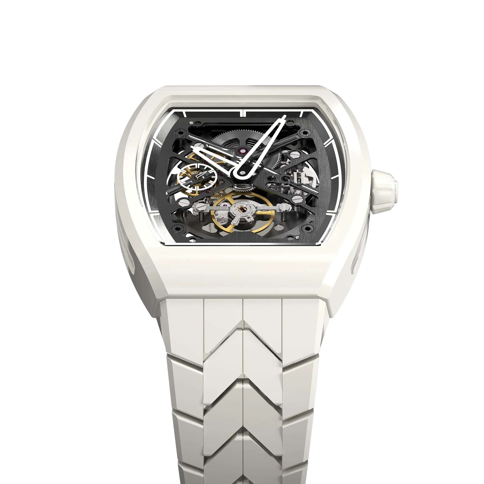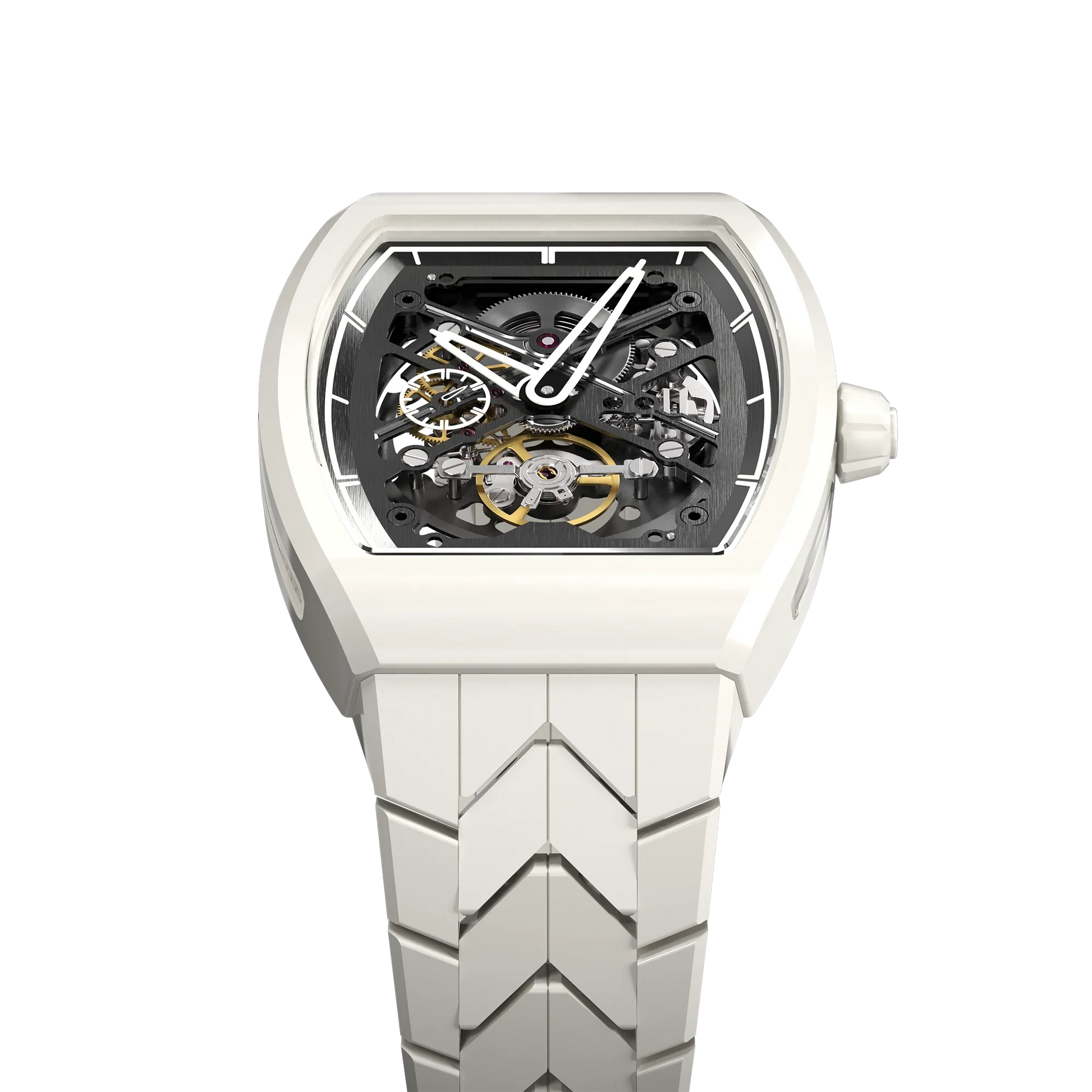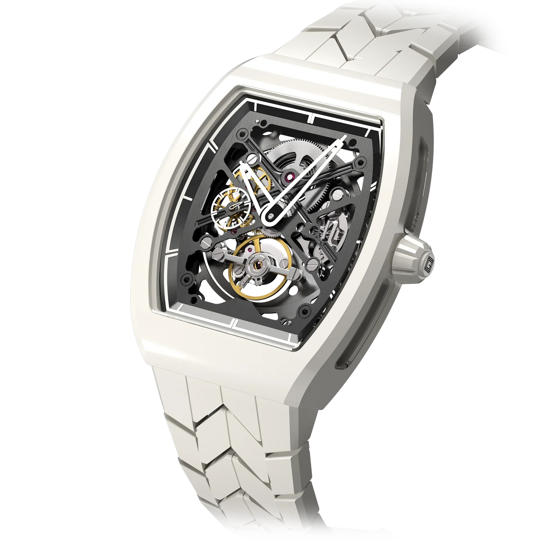 Notre céramique luminescente est d’un blanc éclatant le jour et se transforme en une lueur bleue envoûtante une fois la nuit tombée. Conçue à partir de composés céramiques infusés de Super-LumiNova de pointe, elle capte la lumière ambiante pour la restituer durant des heures dans une teinte douce et éthérée. Légère mais incroyablement résistante, elle défie les rayures et la décoloration tout en offrant une douceur tactile aussi raffinée que son apparence.