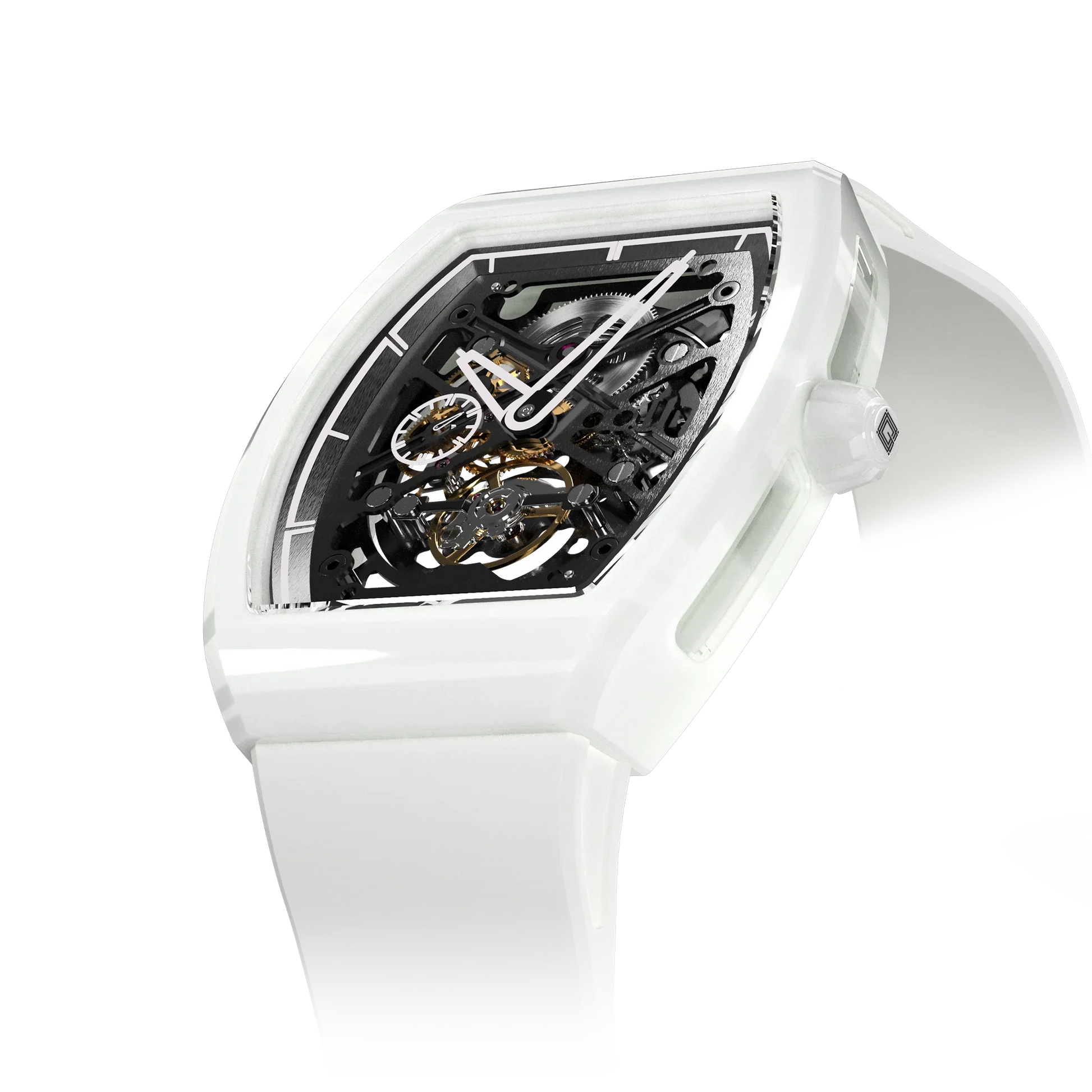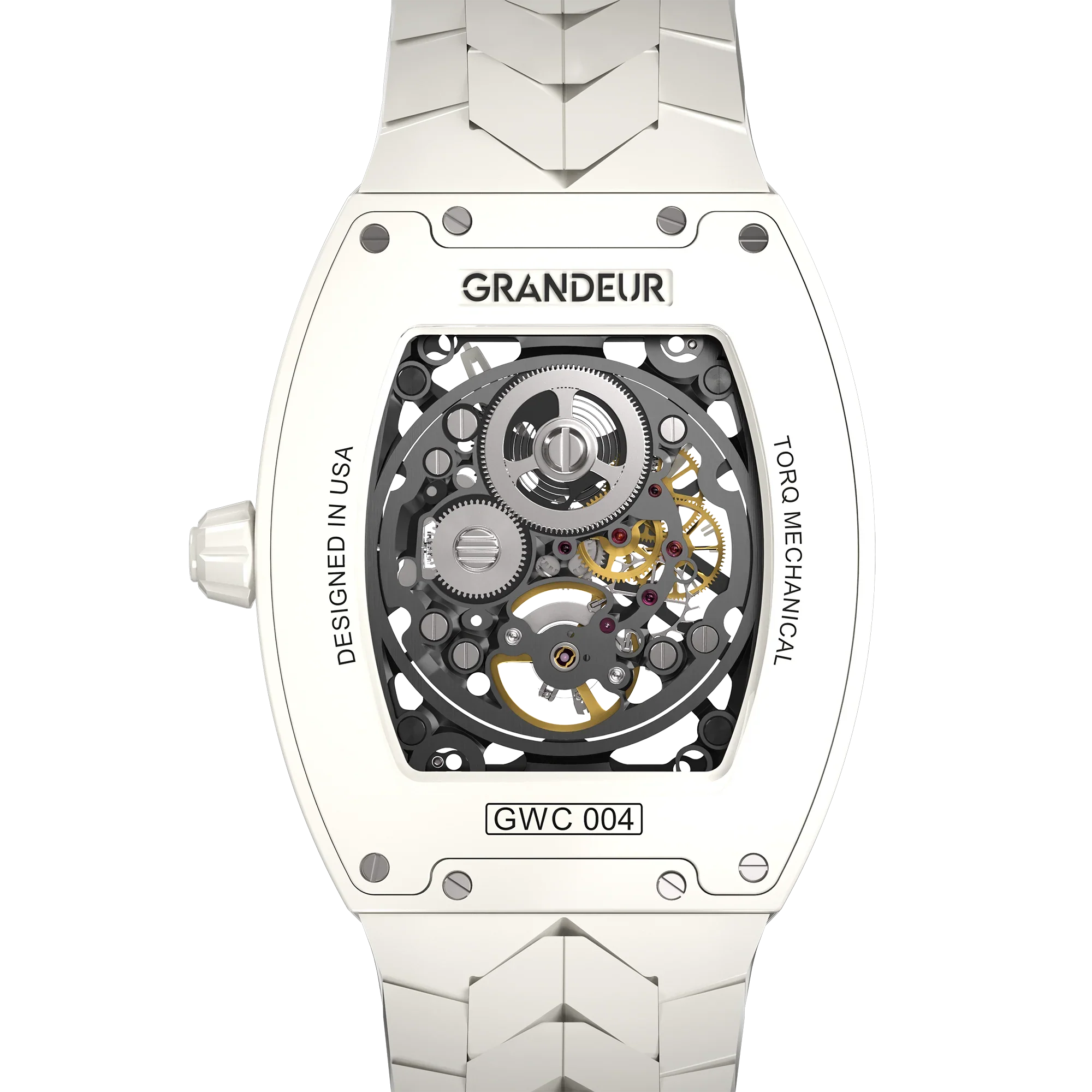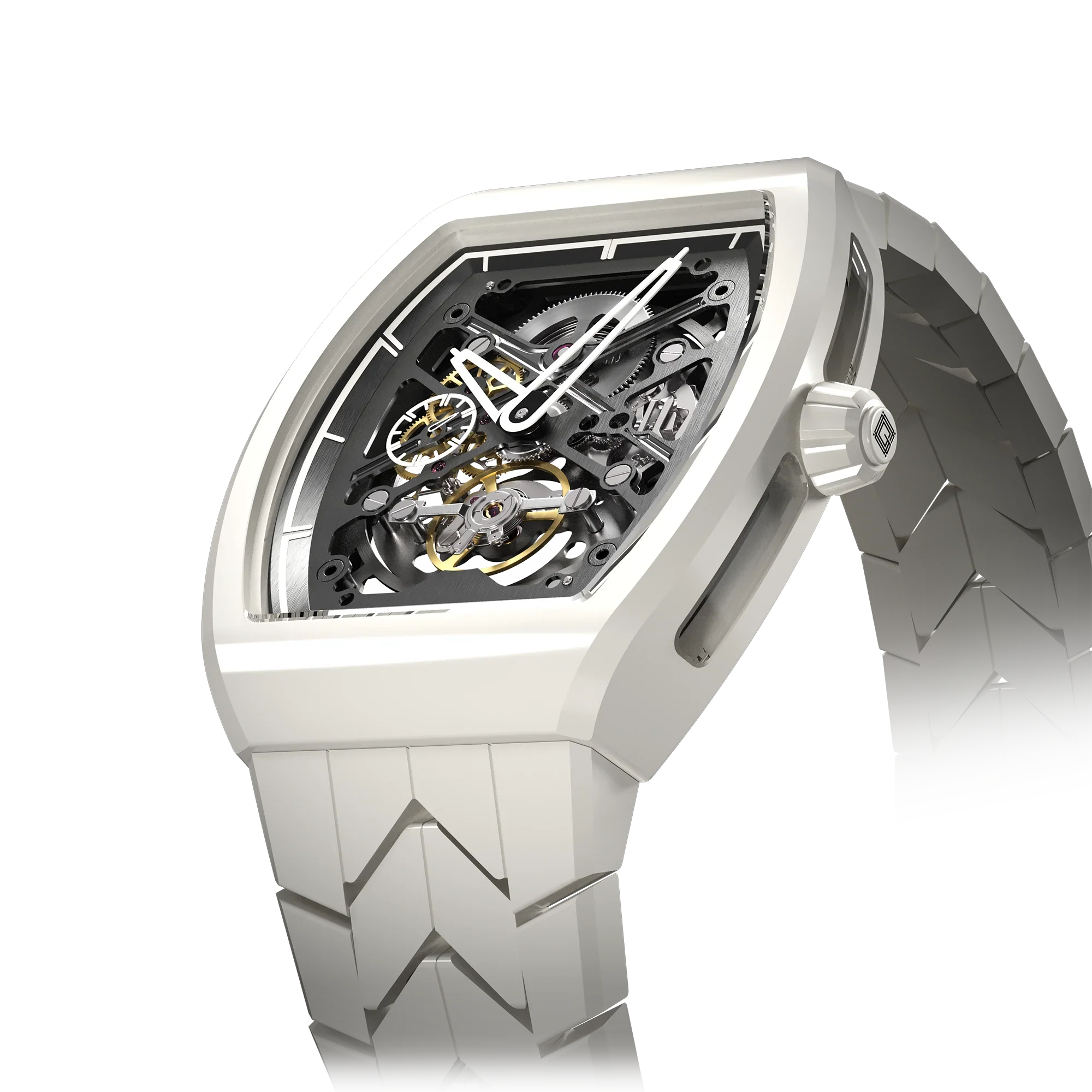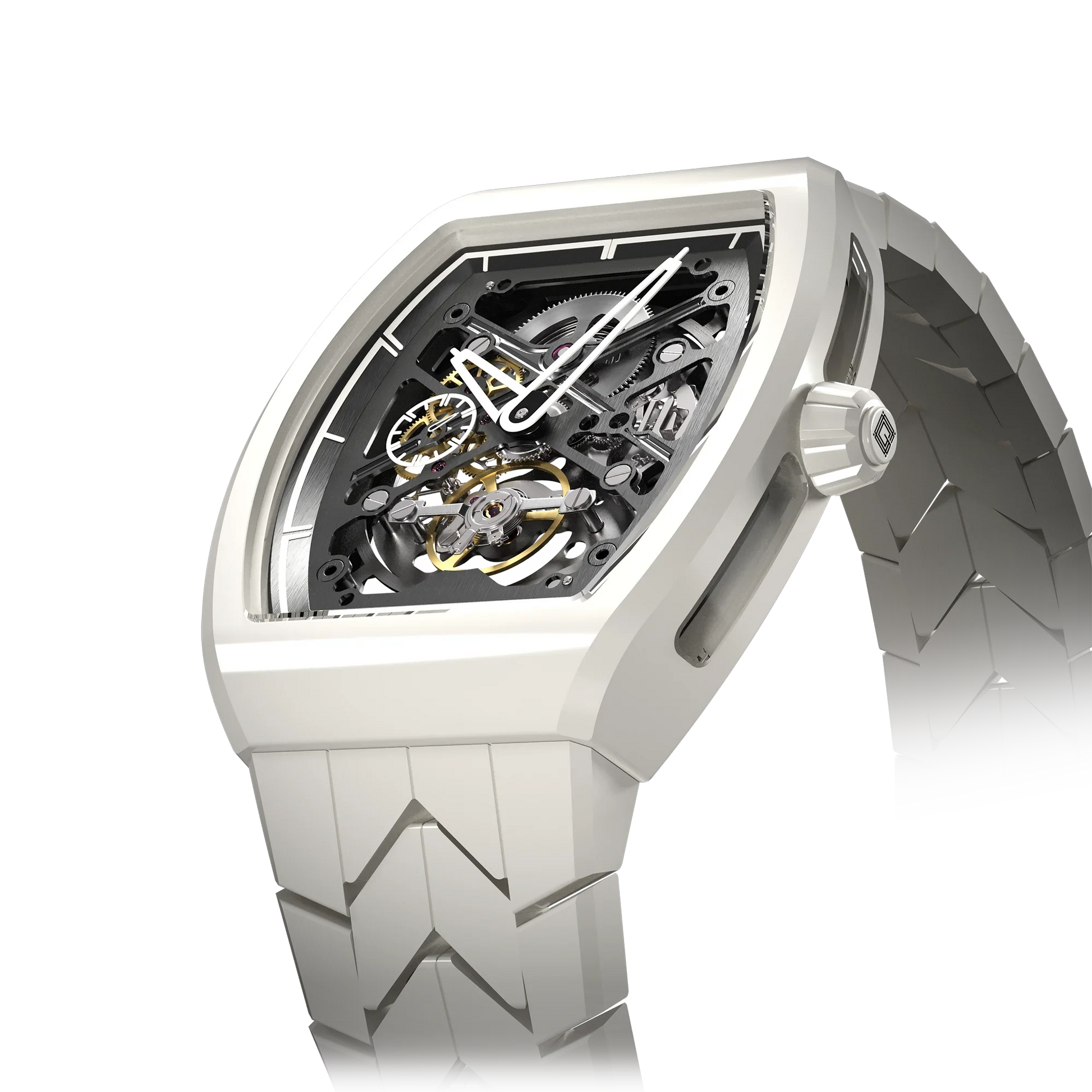 Notre céramique luminescente est d’un blanc éclatant le jour et se transforme en une lueur bleue envoûtante une fois la nuit tombée. Conçue à partir de composés céramiques infusés de Super-LumiNova de pointe, elle capte la lumière ambiante pour la restituer durant des heures dans une teinte douce et éthérée. Légère mais incroyablement résistante, elle défie les rayures et la décoloration tout en offrant une douceur tactile aussi raffinée que son apparence.