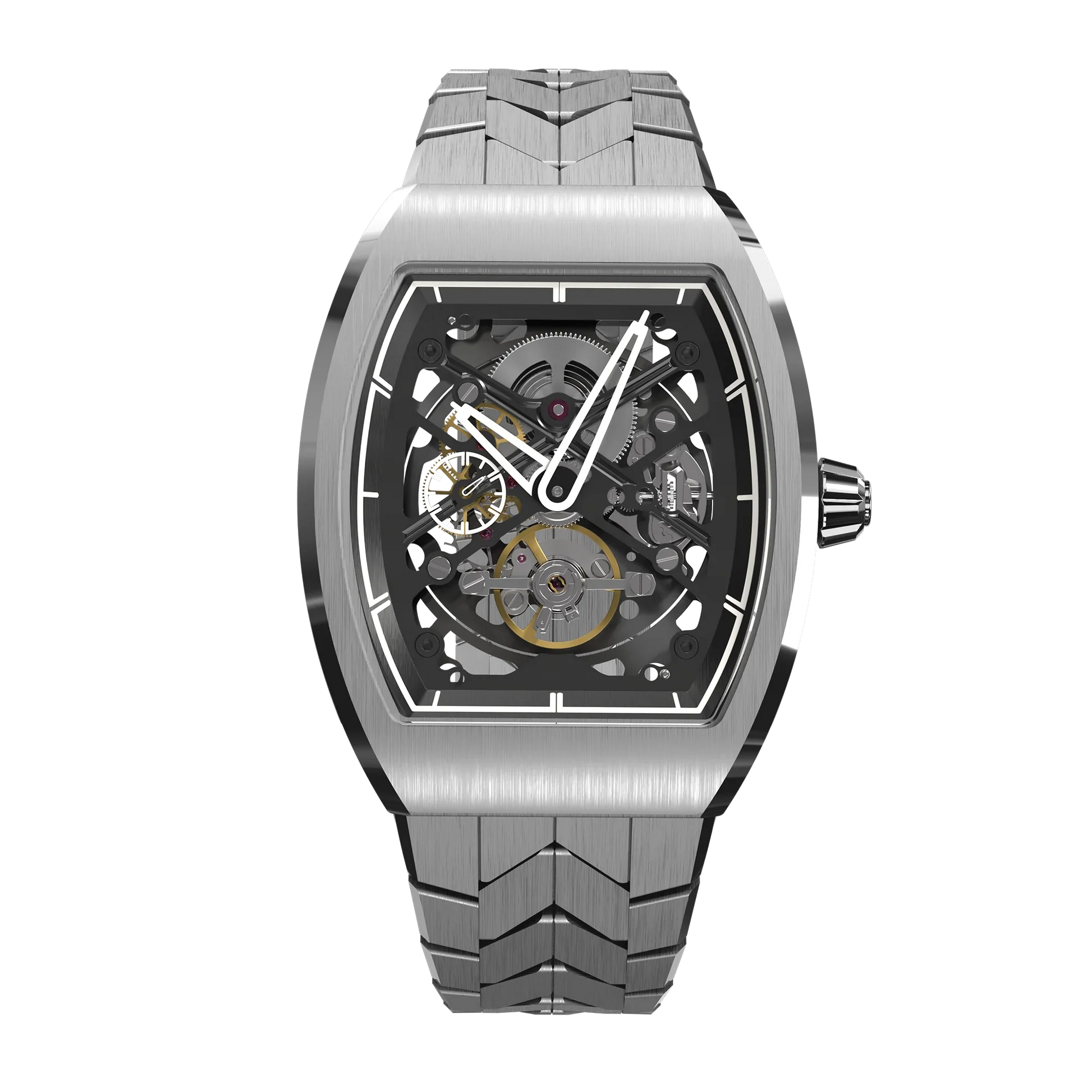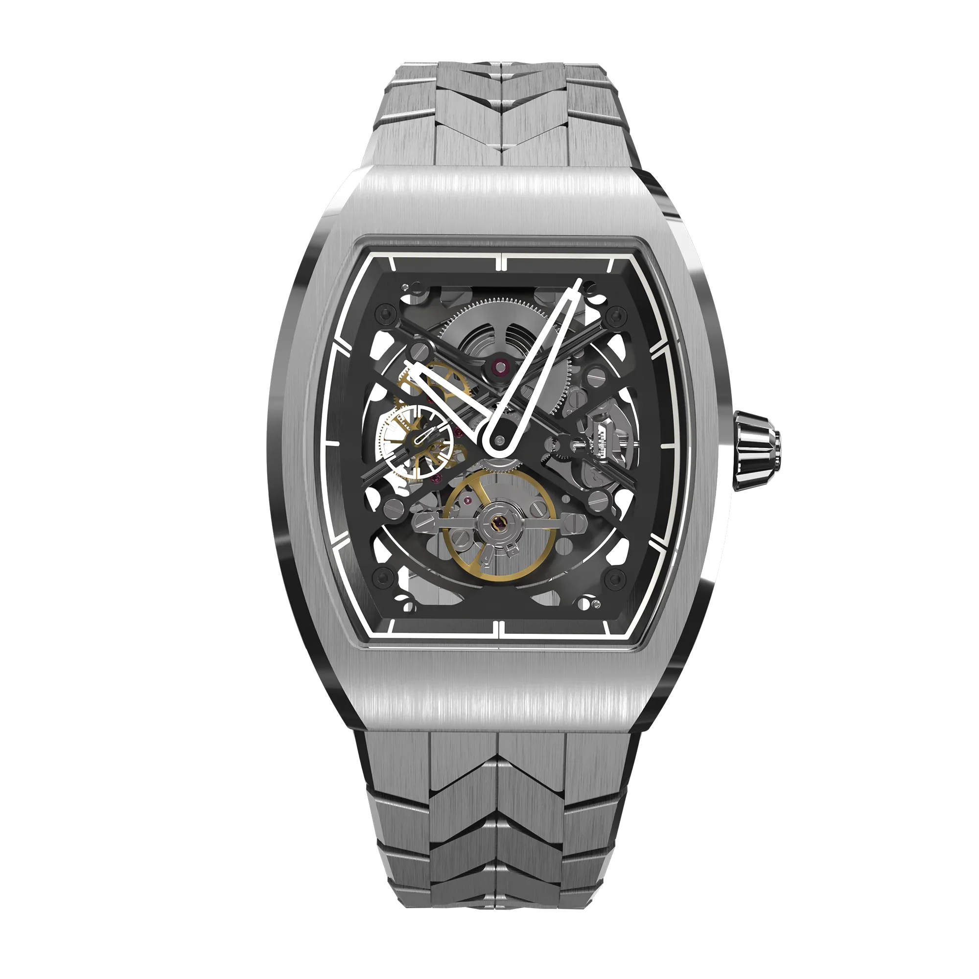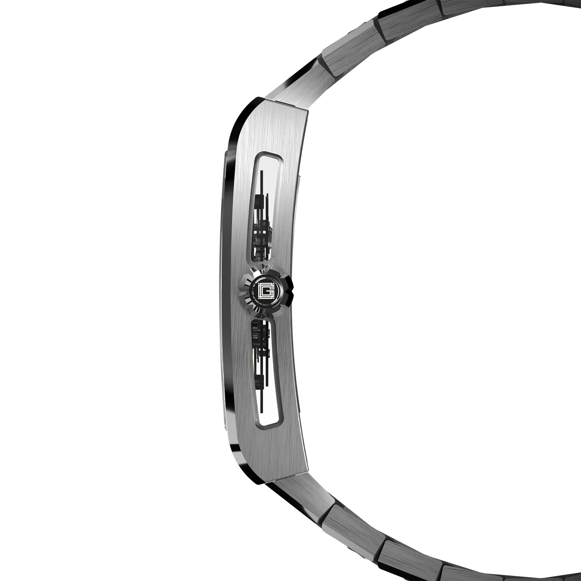 Le titane est le métal du gentleman moderne — élégant, résilient et d’une sophistication naturelle. Réputé pour être presque deux fois plus léger que l’acier inoxydable tout en étant aussi robuste, il procure une sensation de légèreté sans compromis sur la durabilité. Naturellement résistant à la corrosion, à la chaleur et au magnétisme, le titane est également hypoallergénique et biocompatible : aussi doux pour la peau qu’audacieux au poignet. La version brossée révèle une finition mate d’une élégance discrète.
